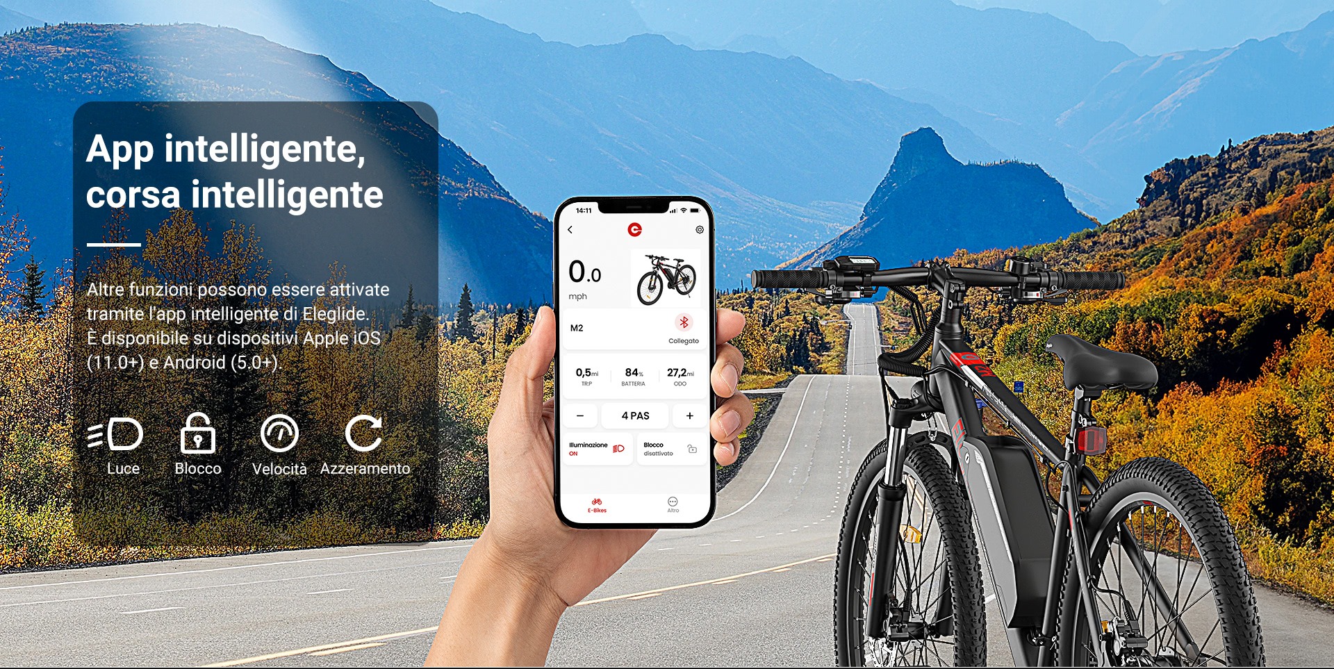 ELEGLIDE non ha trascurato la sicurezza, dotando questa M2 di due freni a disco idraulici, decisamente più efficaci rispetto a quelli meccanici, con una modulabilità superiore e una maggiore durata degli elementi. Torniamo all’assistenza alla pedalata per segnalare che sono disponibili per 5 livelli, che aiutano il ciclista rispettivamente fino a 12, 16, 20, 23 e 25 Km/h, per ottimizzare i consumi e lasciare un po’ di divertimento quando serve.