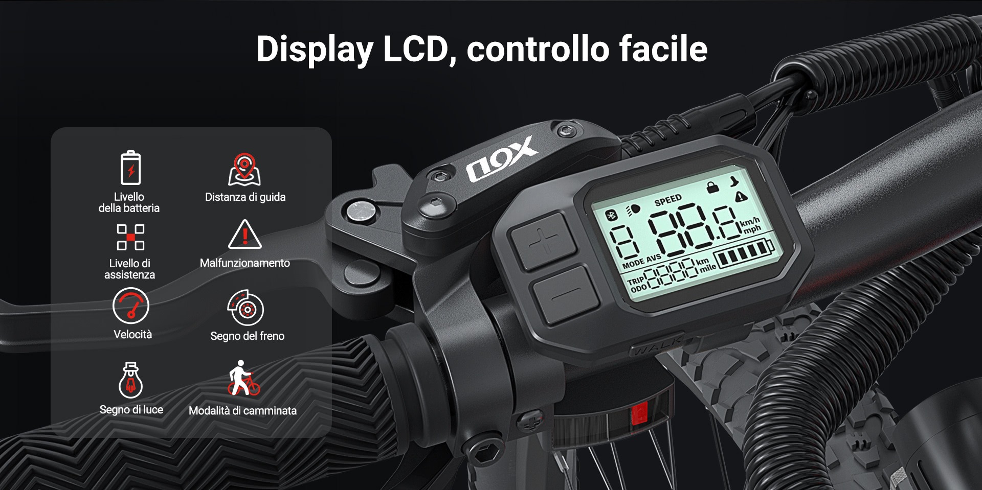 Lo schermo LCD permette di avere tutte le informazioni sotto controllo, a partire dall’autonomia residua, senza ovviamente dimenticare la velocità, distanza percorsa, livello di assistenza ed eventuali problemi. È inoltre possibile controllare, tramite la companion app, alcune funzioni della bici, come attivare un blocco, gestire le luci o conoscere la velocità.