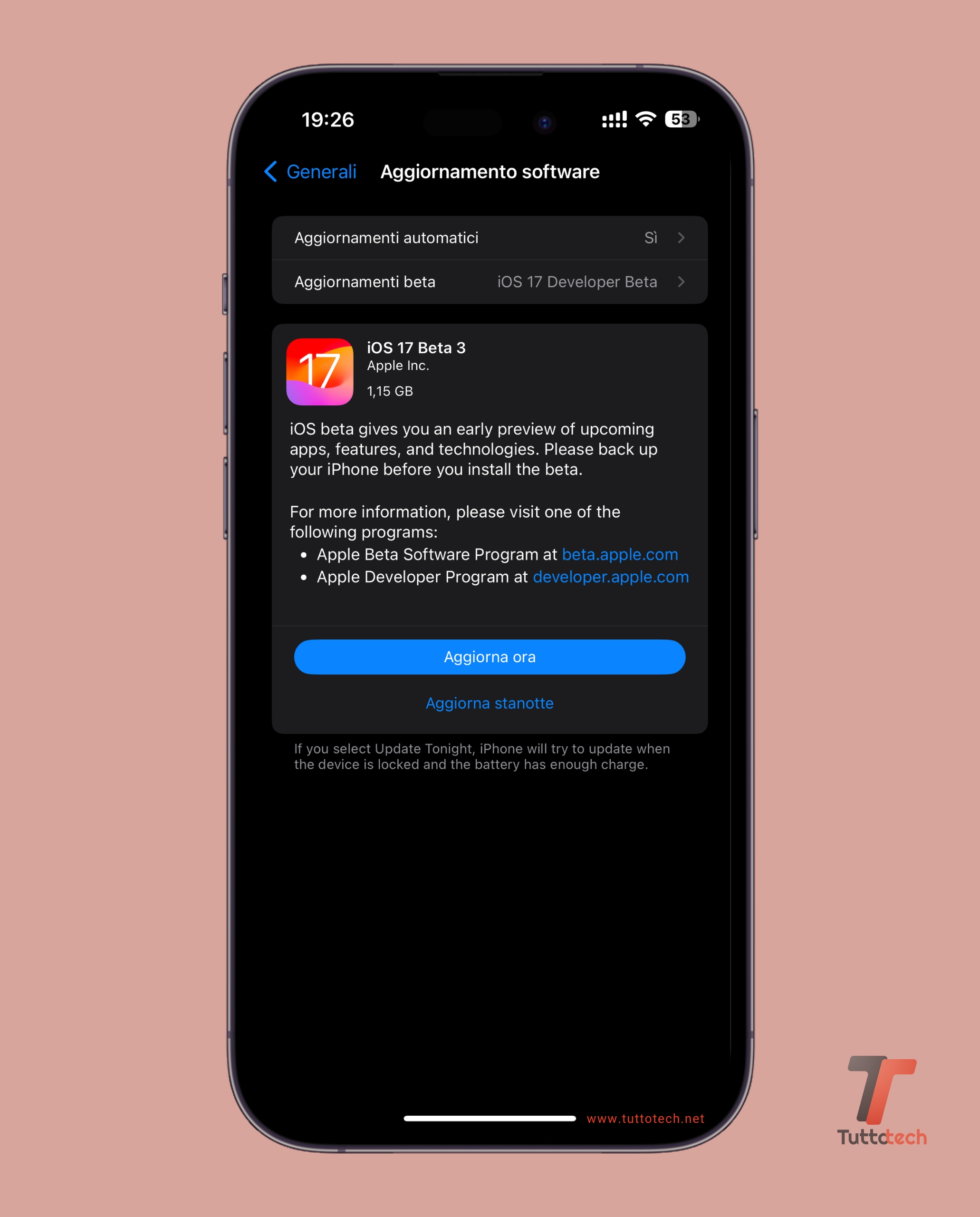 Gli utenti registrati all’Apple Beta Program, riservato agli eventuali beta tester pubblici, si ritroveranno ora la nuova opzione per gli aggiornamenti beta: ad esempio su iPhone, al percorso “Impostazioni > Generali > Aggiornamento software > Aggiornamenti beta” è ora presente la voce “iOS 17 Public Beta” che, se selezionata, vi abilita alla ricezione delle versioni in anteprima che, sulla carta, sono le stesse “nuove” beta 3 che il colosso di Cupertino aveva rilasciato preventivamente nella serata di ieri.