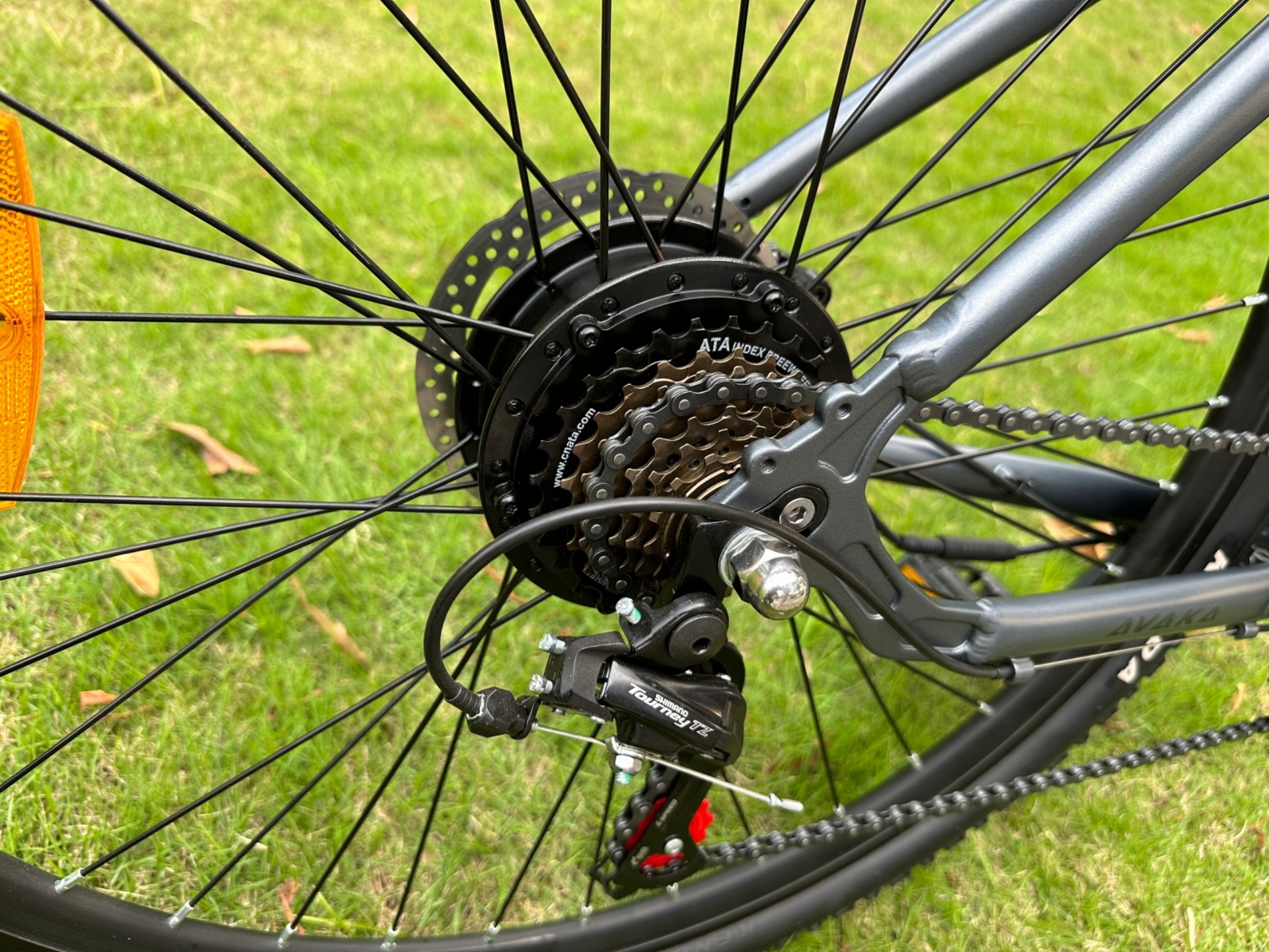 La bici a pedalata assistita di cui vi parliamo oggi è AVAKA R3, dotata di motore brushless con potenza di picco di 350 watt in grado di spingere la bici fino a 25 Km/h, velocità oltre la quale ci si dovrà affidare esclusivamente ai propri muscoli. La batteria, integrata nel tubo obliquo ma comunque rimovibile, ha una capacità di 36V/12,5 Ah, e in condizioni ottimali permette di raggiungere i 70 chilometri di autonomia, Si tratta ovviamente di un dato che può cambiare in funzione della velocità, del percorso seguito e del peso dell’utilizzatore.