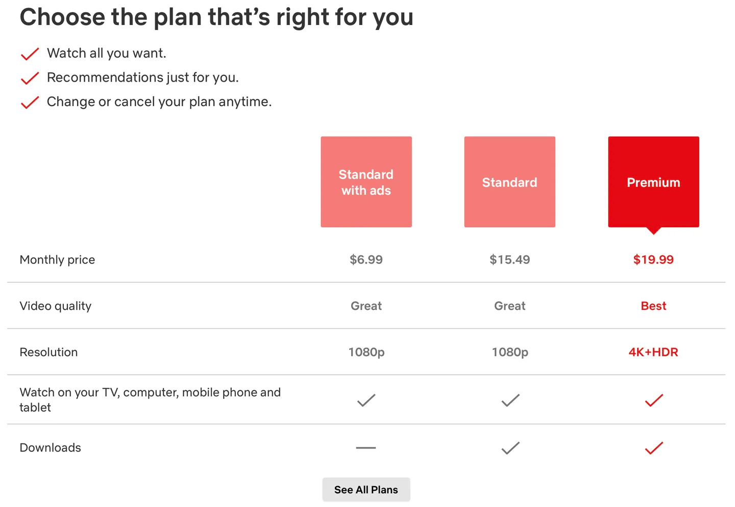 Così il divario fra le tre opzioni d’abbonamento disponibili diventa notevole, considerando i 12,99 e i 17,99 euro mensili necessari per i piani Standard e Premium, destinati con buona probabilità a rimanere le uniche formule di Netflix senza annunci pubblicitari anche in Europa e altrove. Dopo la rimozione statunitense e britannica, probabilmente sarà infatti questione di tempo anche per altri mercati, compreso il nostro.