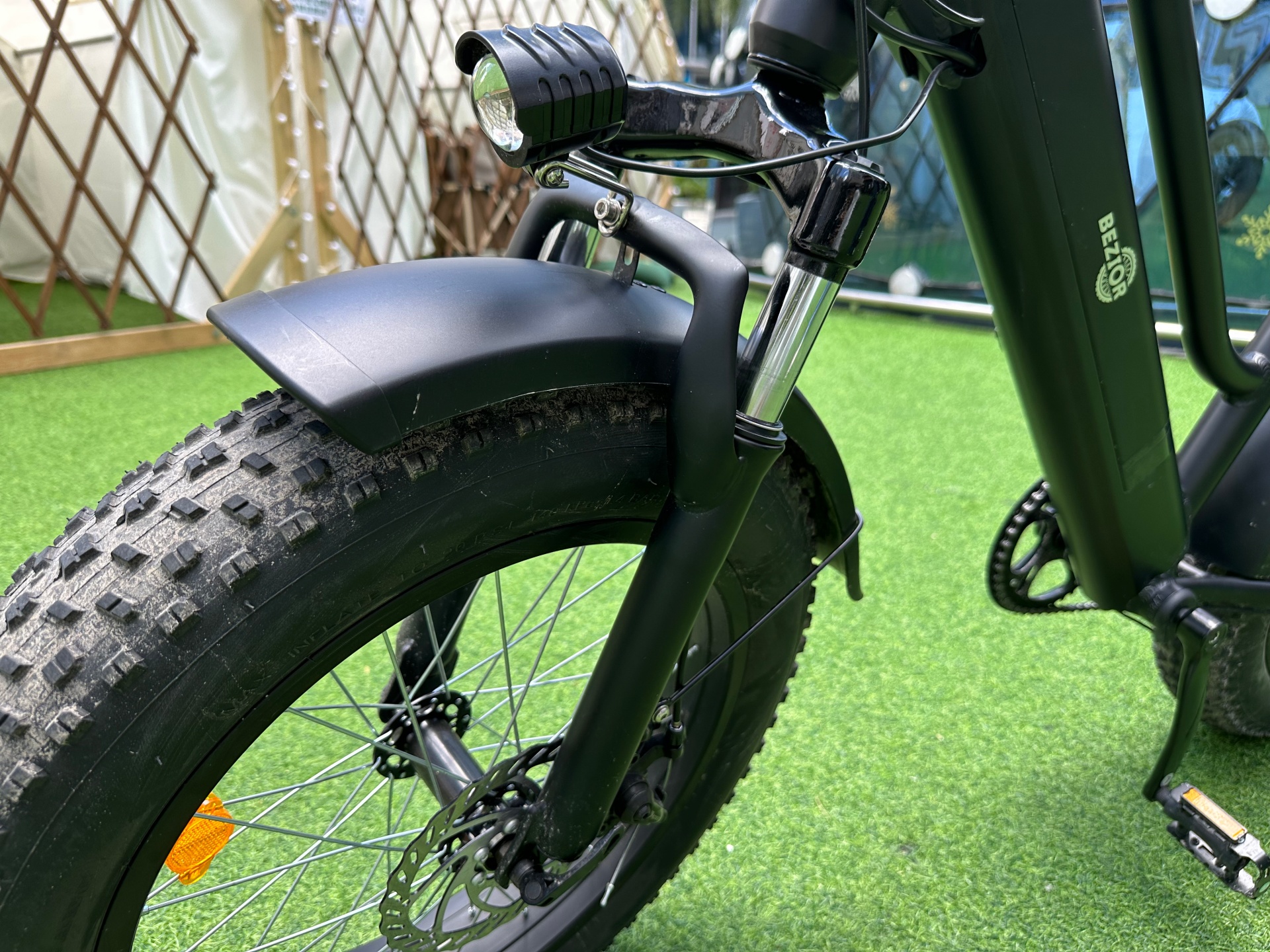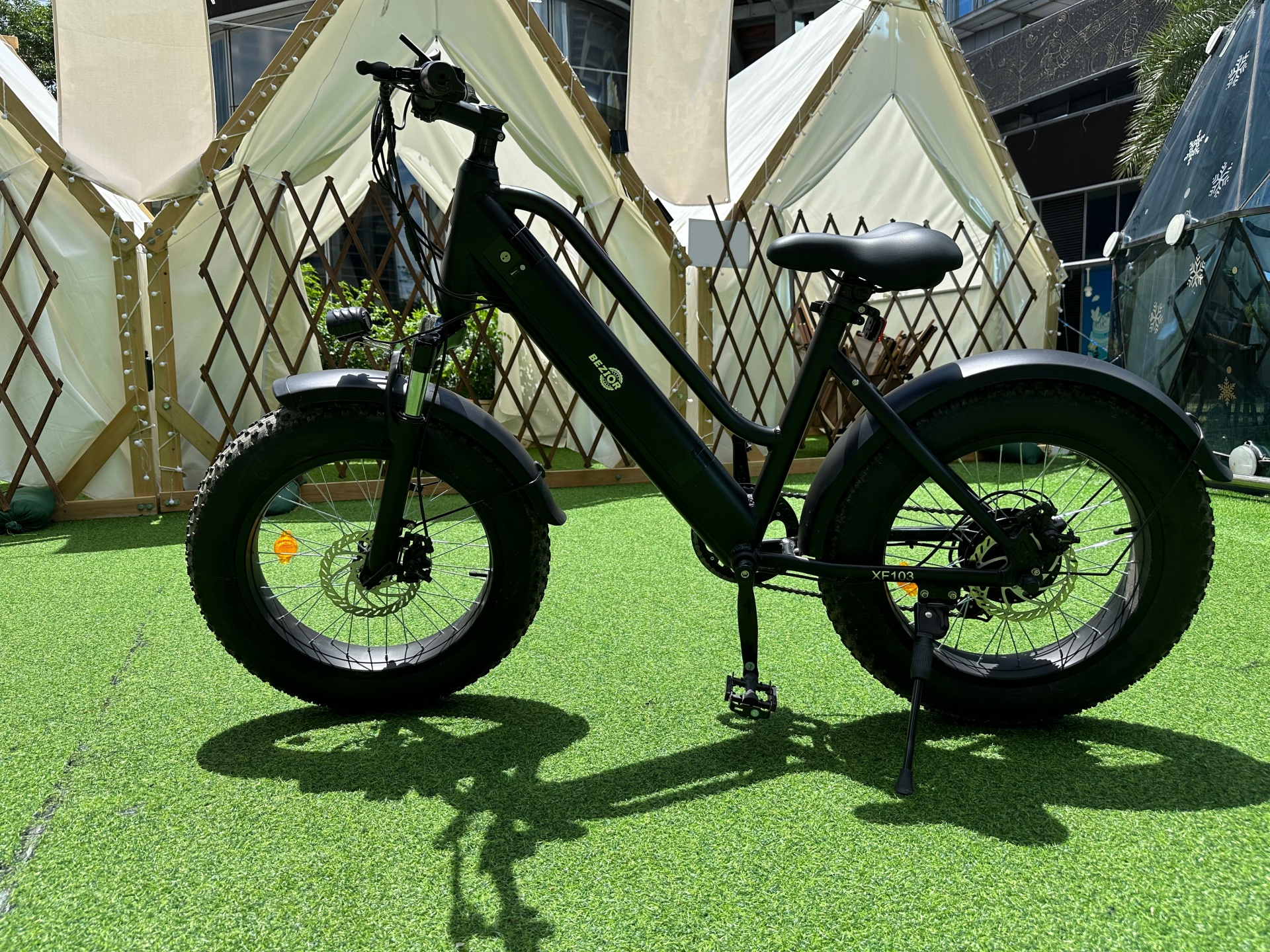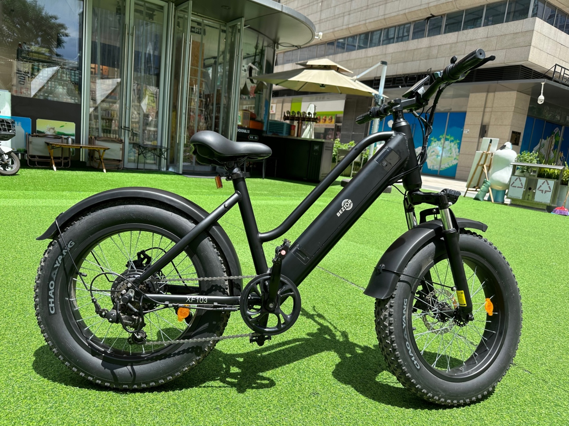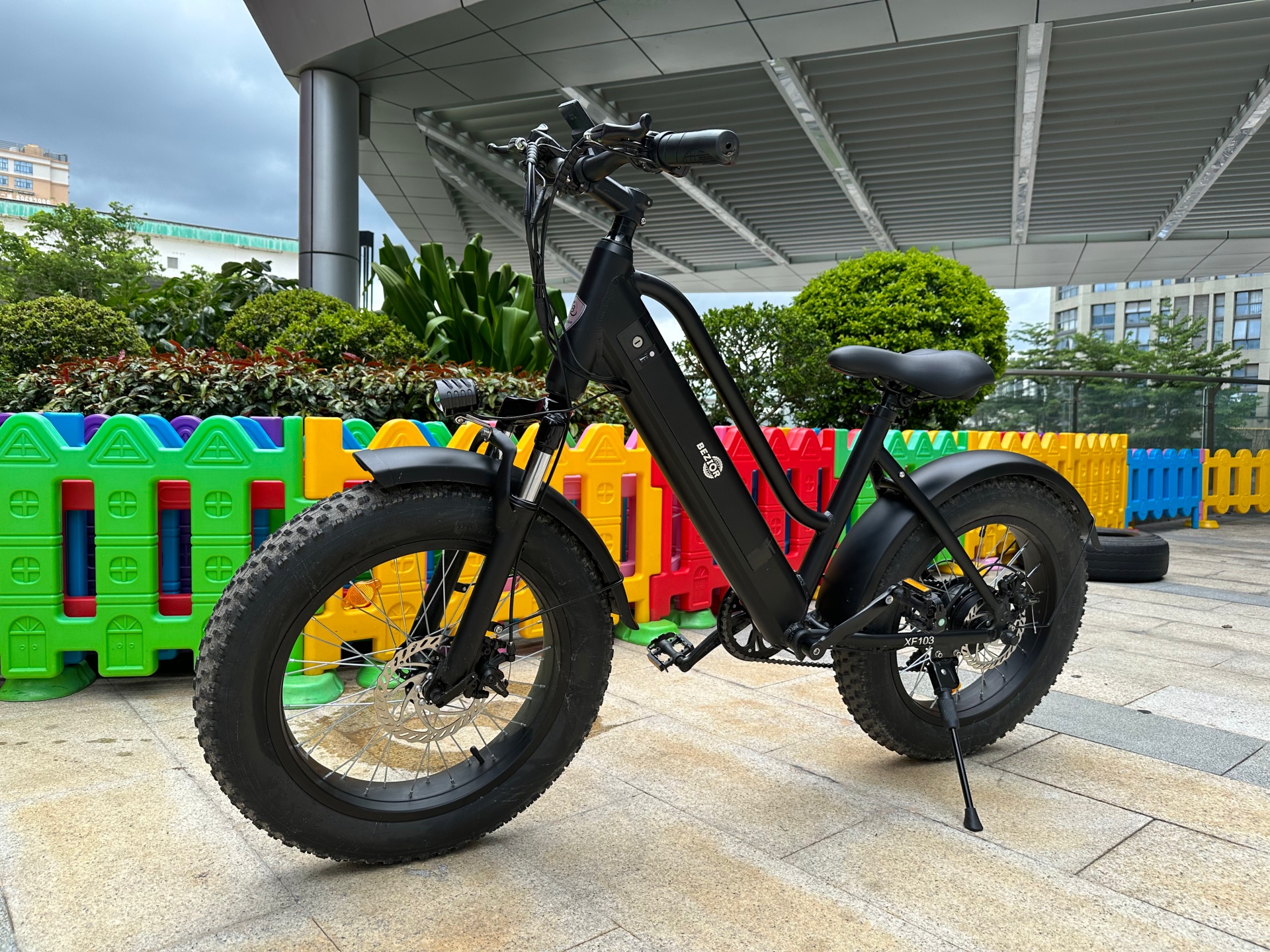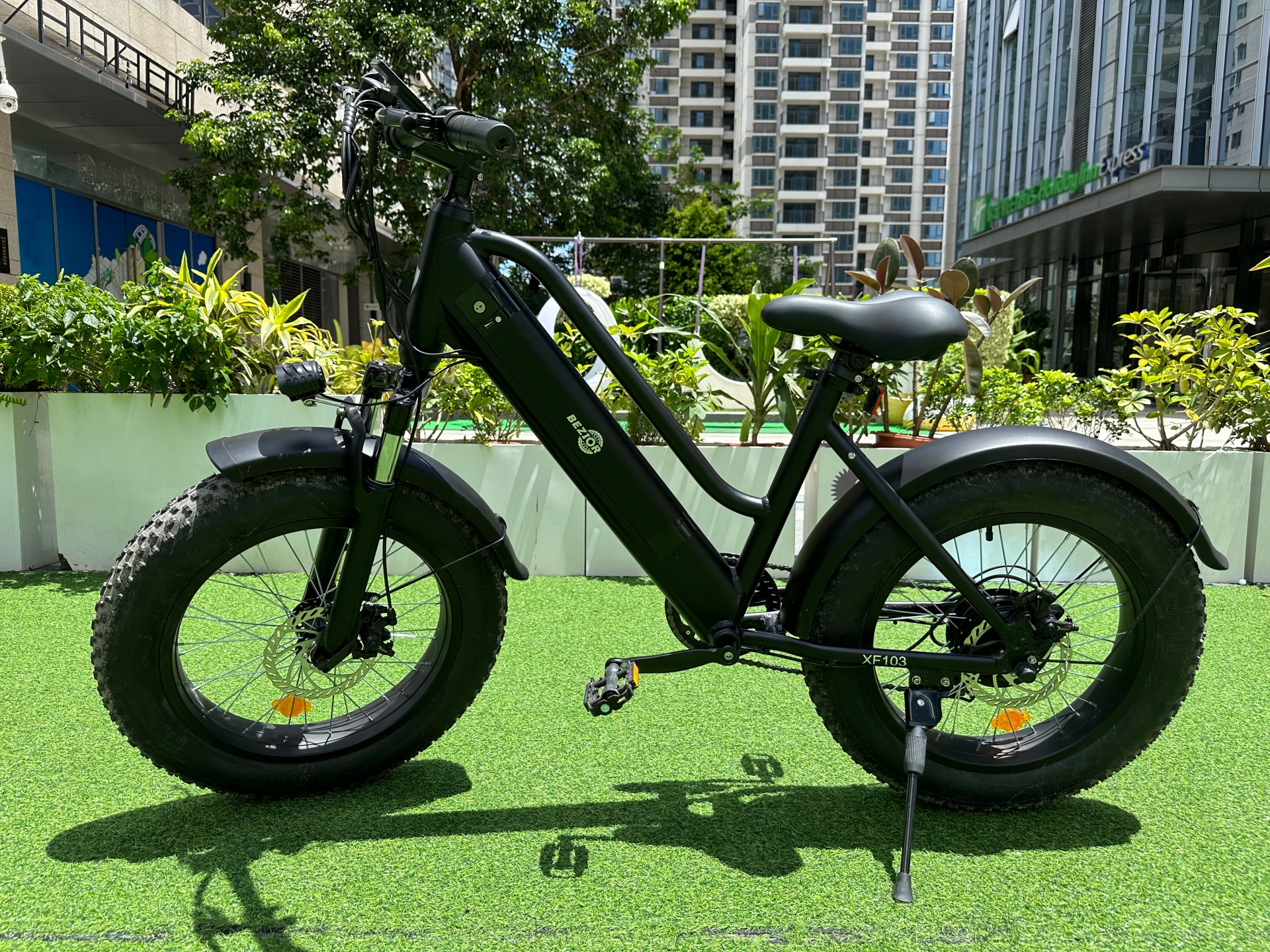 BEZIOR XF103 è curata anche dal punto di vista del comfort e della sicurezza, grazie a pneumatici da 20 x 4 pollici, ideali nel traffico cittadino, per evitare di cadere su binari del tram e selciato, ma anche per le strade bianche, dove interviene anche la sospensione anteriore. Le frenate sono garantite da una coppia di freni a disco meccanici, con un design che favorisce la dissipazione del calore mantenendo elevata l’efficienza. L’attivazione dei freni comporta inoltre l’interruzione immediata dell’assistenza alla pedalata, per evitare qualsiasi rischio.