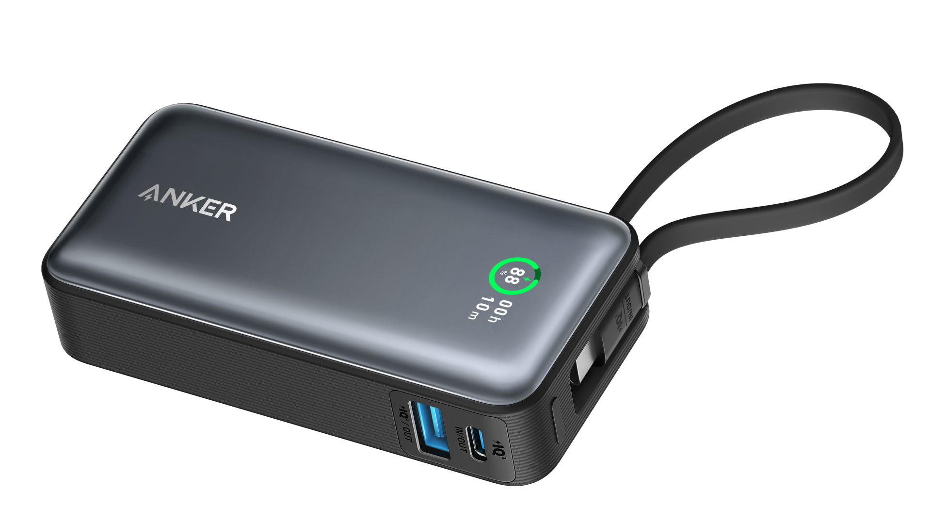 Anker Nano Power bank è disponibile anche nella versione con uscita a 30 watt e cavo USB-C integrato per semplificare la ricarica di qualsiasi dispositivo. La batteria ha una capacità di 10.000 mAh, sufficiente a caricare la maggior parte degli smartphone in circolazione. Il display intelligente permette di monitorare i livelli di potenza, mentre numerosi sensori prevengono surriscaldamento e danni durante la ricarica. È già in vendita a 49,99 euro.