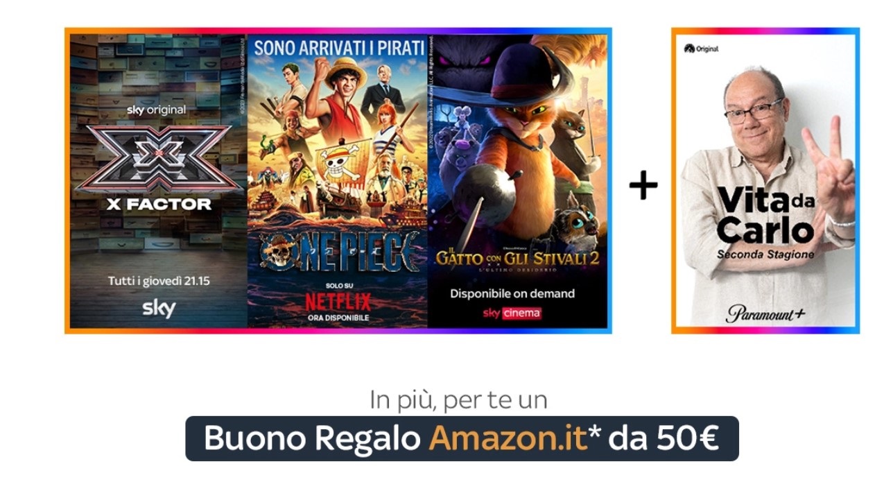È il momento di attivare un nuovo abbonamento a Sky. Con l’inizio della settimana, infatti, Sky ha lanciato una nuova Offerta Speciale dedicata all’abbonamento composto da Sky TV, Netflix e Sky Cinema (con Paramount Plus incluso). L’offerta è ora disponibile a prezzo scontato e con un buono Amazon da 50 euro in regalo. Da notare, inoltre, che c’è anche la promozione dedicata a chi vuole ridurre ulteriormente la spesa, puntando sul bundle Sky TV e Netflix.