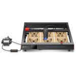 Ovviamente è possibile collegare il proprio smartphone al fine di utilizzare la companion app per caricare i file e incidere sul materiale prescelto. L’incisore, che funziona anche da taglierina laser, adotta la tecnologia COS di seconda generazione che unita al raggio polarizzato incrementa le prestazioni del 40%, producendo un raggio di forma rettangolare con un rapporto però molto prossimo a 1:1. Arriva infatti a 0,06 x 0,05 mm a bassa potenza e 0,16 x 0,14 mm ad alta potenza.