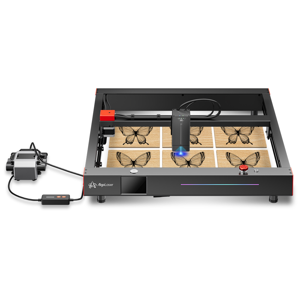 La scheda madre di AlgoLaser Delta 22W può contare su una doppia CPU quad core con 8 MB di RAM, 16 MB di memoria interna e la possibilità di leggere microSD fino a 32 GBG, per caricare disegni e immagini. Bastano 10 secondi per trasferire le immagini in memoria e iniziare l’incisione e con il supporto OTA è possibile aggiornare il firmware del dispositivo per aggiungere nuove funzionalità.
