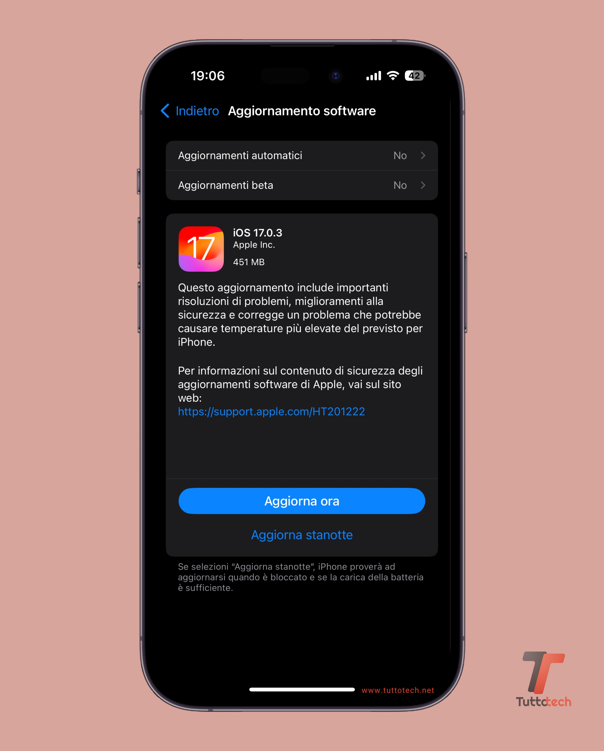 Nel caso in cui non abbiate ancora effettuato l’aggiornamento a iOS 17 ma siate fermi a iOS 16.7, dovrete prima effettuare l’aggiornamento a iOS 17 e, solo dopo, potrete installare iOS 17.0.3 sul vostro iPhone supportato. La stessa procedura vale anche per gli iPad e iPadOS 17.0.3.