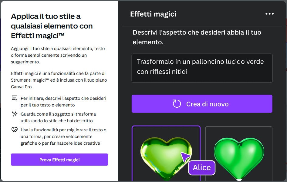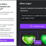 - Effetti magici: è uno strumento che trasforma un testo o un elemento grafico sfruttando lo stile particolare che gli viene fornito in input dall’utente.