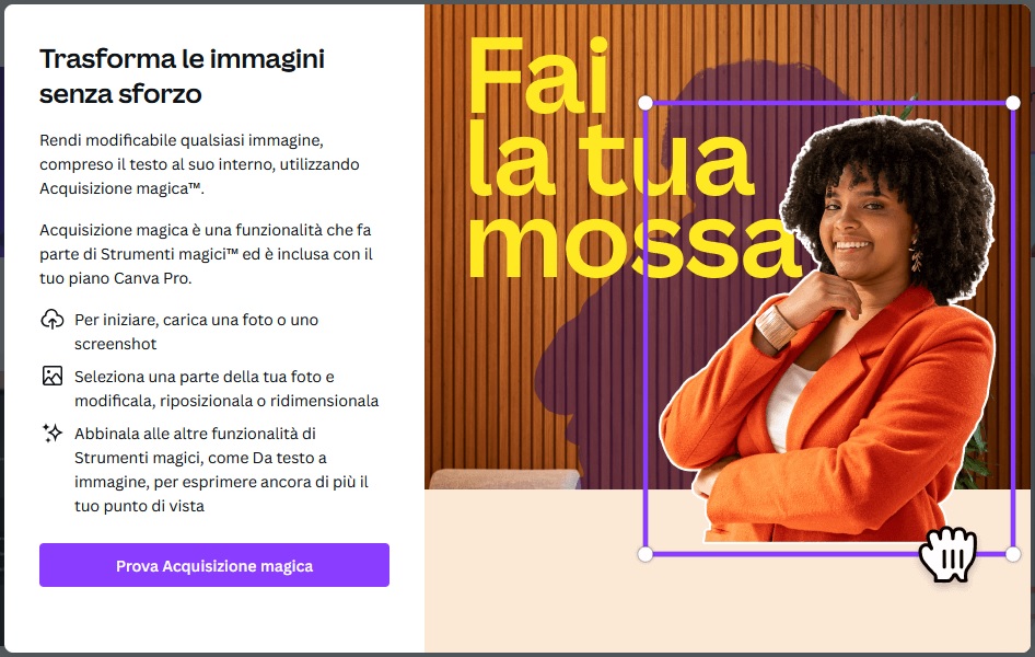 Tutte queste funzionalità sono incluse con l’abbonamento Canva Pro