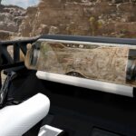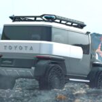 L’aspetto generale ricorda molto quello squadrato e massiccio del vecchio FJ40, con proporzioni simili, fari tondi e griglia frontale verticale. Non mancano però elementi di rottura come la fascia anteriore che integra telecamere e sensori, i cerchi carenati aerodinamici e la carrozzeria semi-trasparente. Gli interni sono ancora più futuristici, con un grande parabrezza panoramico, console di controllo minimal e sedili avvolgenti.
