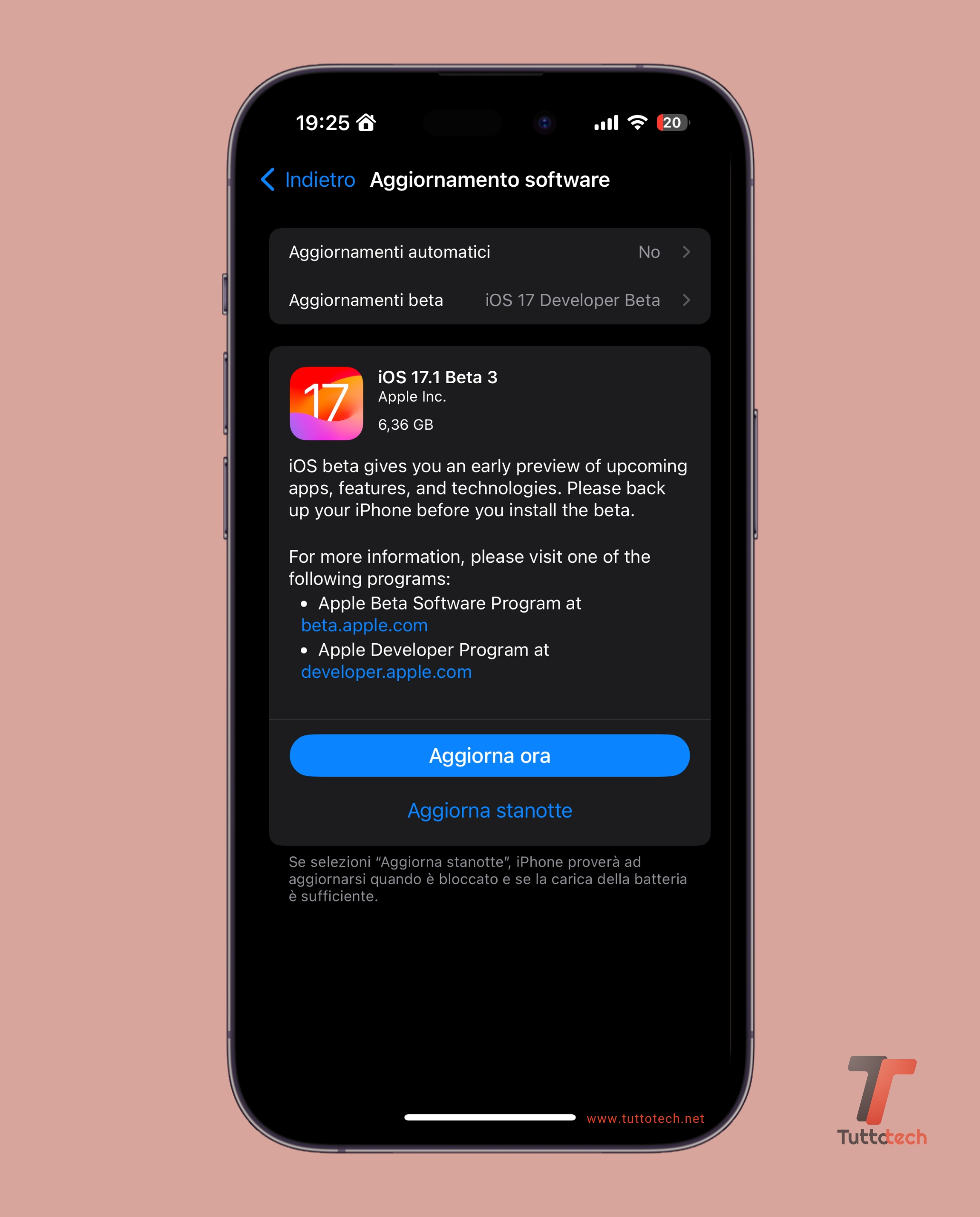 Nello specifico di iOS 17.1, la build che porta con sé la beta 3 ha un peso di 6,36 GB su iPhone 14 Pro (provenendo da iOS 17.0.3). Dal punto di vista della stabilità (segnalata internamente con l’ultima lettera del codice della build), la build ha una classificazione “a”, netto passo in avanti rispetto alla precedente beta che era classificata “e”.