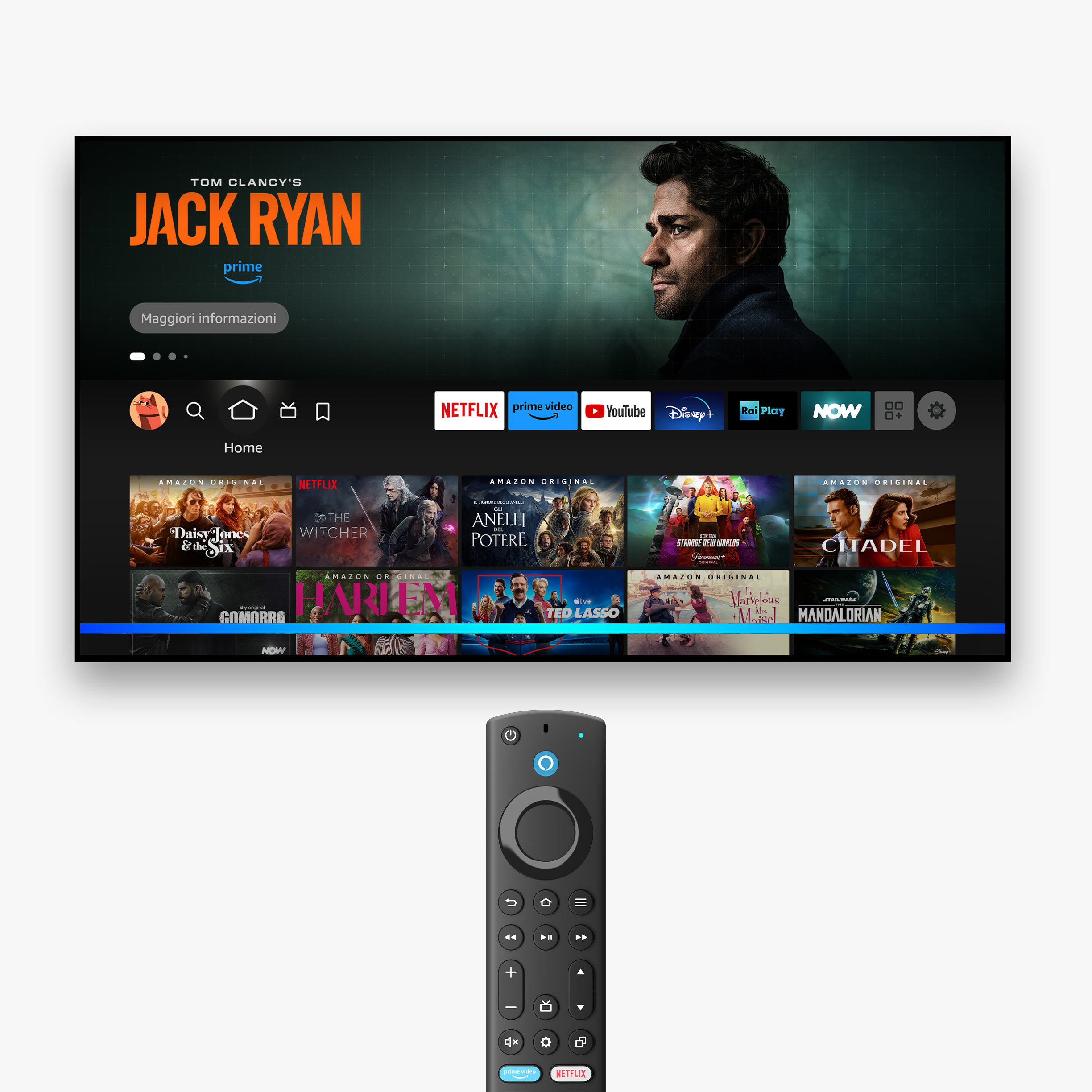 Ci sono poi 16 GB di memoria per l’archiviazione, il supporto al 4K Ultra HD e per i formati Dolby Vision, HDR e HDR10+, oltre all’audio spaziale Dolby Atmos. Nuovo anche il telecomando vocale Alexa Enhanced Edition, con pulsanti dedicati ai canali e un tasto “Recenti” per accedere rapidamente all’ultima app o al canale usato.