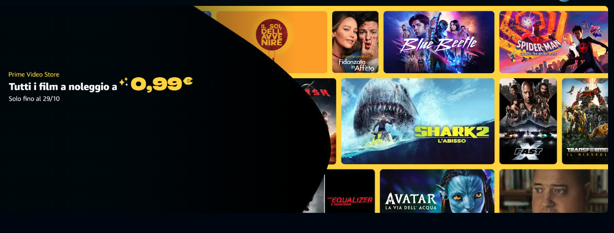 Per quanto riguarda il noleggio, Amazon permette di noleggiare tutti i film presenti sul Prime Video Store a soli 0,99 euro grazie a una promozione valida fino a domenica 29 ottobre 2023.