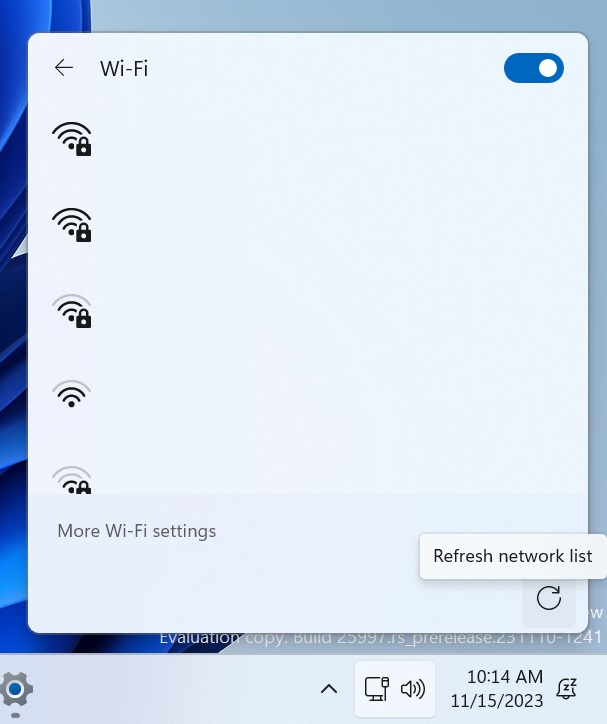 Come riportato su X da PhantomOcean3, la versione più recente di Windows 11 Canary aggiunge un pulsante di aggiornamento delle reti in fondo all’elenco delle reti Wi-Fi disponibili.