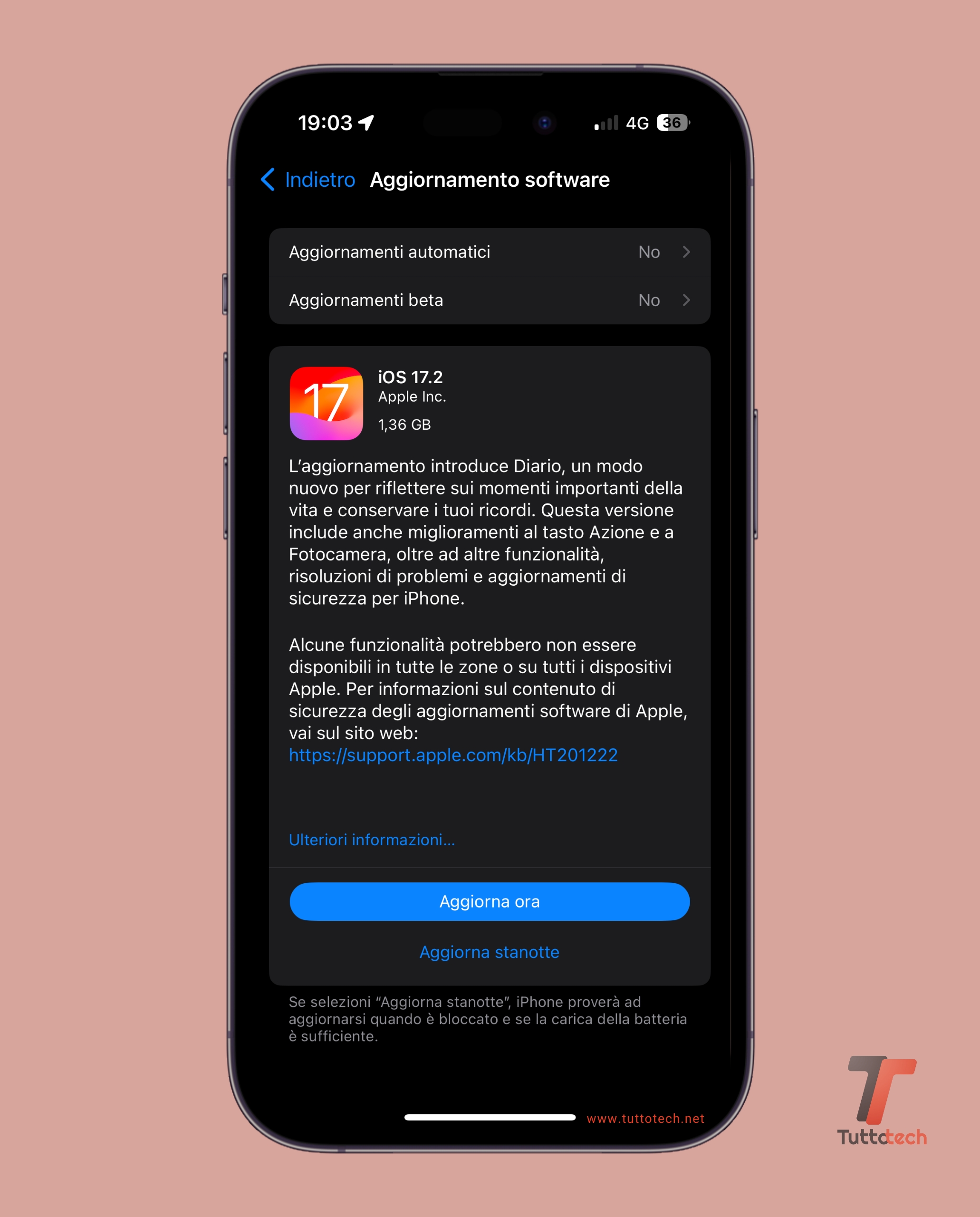 Per conoscere tutte le novità dell’aggiornamento, vi rimandiamo all’articolo dedicato; a questo indirizzo, invece, potrete trovare le note di rilascio fornite e aggiornate direttamente da Apple. Di seguito, infine, riportiamo il changelog completo di iOS 17.2: