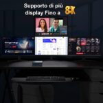 Il Mini PC GEEKOM Mini IT12 supporta più monitor in contemporanea con una risoluzione fino a 8K, ottimo quindi per chi vuole lavorare con risoluzioni elevatissime o vuole collegare più monitor per avere sotto controllo più applicazioni allo stesso tempo. In particolare è possibile collegare due schermi 8K e due schermi 4K, per un totale di quattro monitor esterni, sfruttando le due porte HDMI e due porte USB4.