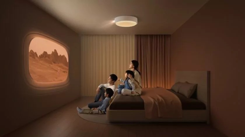 Essendo una vera e propria plafoniera da soffitto, non occupa spazio sul pavimento e non pende dal soffitto come accade invece per i video proiettori tradizionali. Il proiettore integrato è in grado fi creare schermi dalla dimensione massima di 100 pollici con un fattore di forma 0,7:1 e può essere utilizzato anche per proiettare immagini, libri interattivi per bambini o per riprodurre musiche rilassanti per favorire il sonno. Lo speaker integrato è realizzato da Harman Kardon per garantire un’ottima qualità di ascolto.