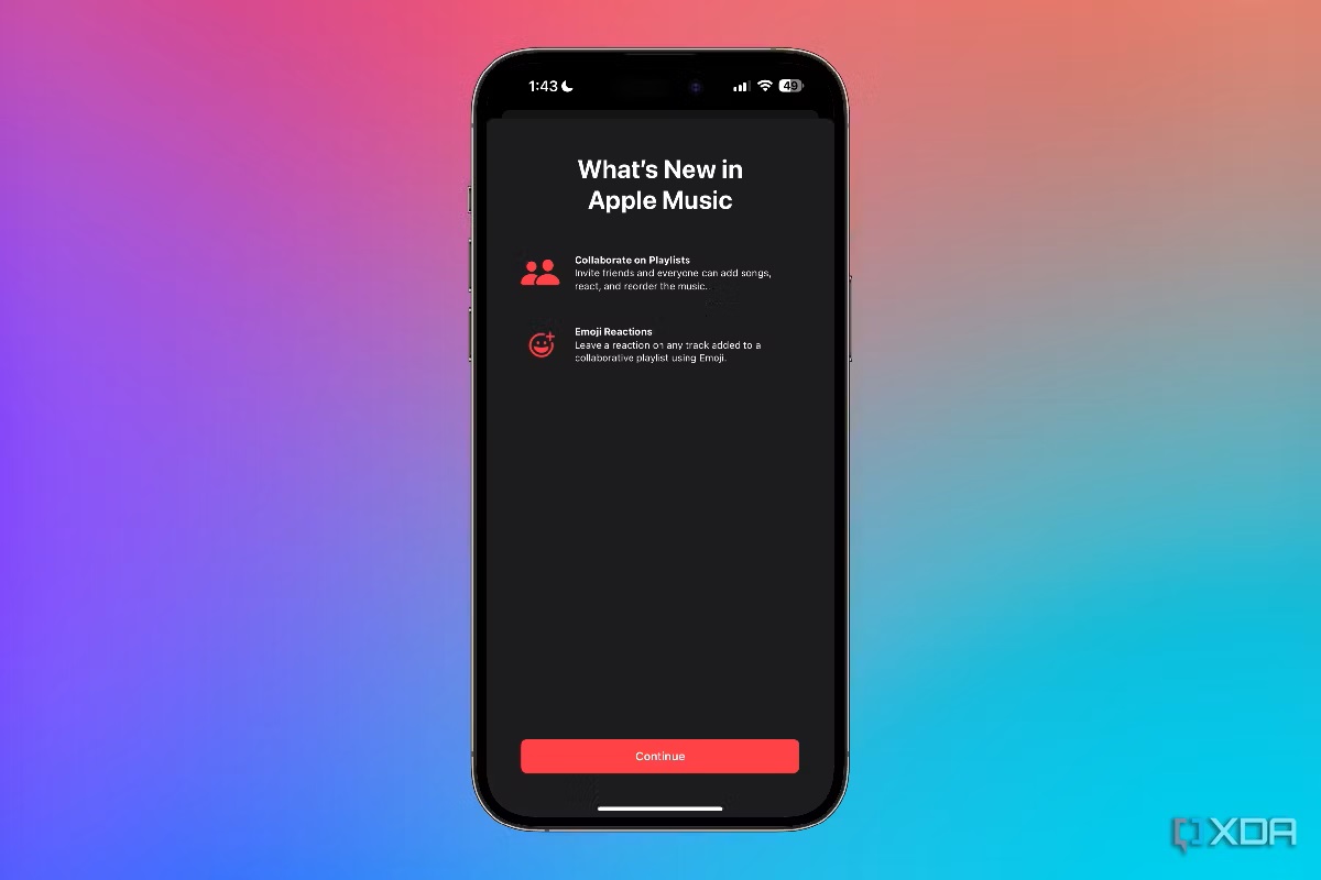 Aprendo per la prima volta Apple Music in seguito all’aggiornamento a iOS 17.3, verremo accolti da una nuova schermata di benvenuto (splash screen) che ci informa delle nuove funzionalità del servizio di streaming musicale (via XDA). Con l’aggiornamento, infatti, l’app viene arricchita con le Playlist Collaborative (già attese con iOS 17.2 ma poi rinviate) e con le Reazioni emoji.