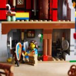 Composto da ben 3.304 pezzi, il nuovo set è dotato di due grandi strutture, che possono essere aperte per rivelare i dettagli interni e per consentire ai più piccoli di giocare in maniera più divertente. Troviamo una taverna, un caseificio, un laboratorio di pittura degli scudi, una torre di guardia, un laboratorio dedicato alla lavorazione del legno e uno per la tessitura. Completano il quadro una bancarella e un albero.
