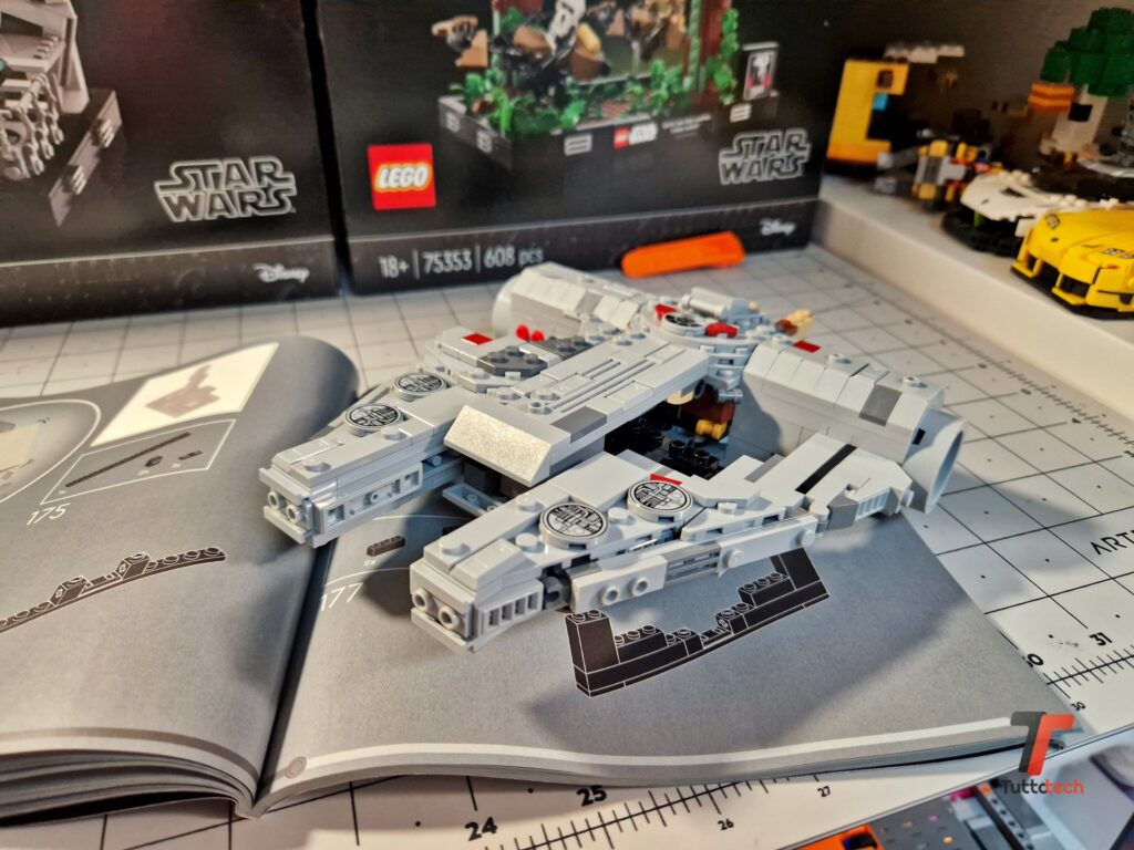 All’interno della confezione, in vendita al prezzo di listino di 84,99 euro, troviamo 11 sacchetti che contengono i 921 elementi che compongono il set. Peccato, e questa è la sola nota dolente di un set altrimenti meraviglioso, per l’assenza di minifigure, che avrebbero arricchito ulteriormente questo piccolo capolavoro. Una minifigure di Han Solo, magari in compagnia di Chewbacca, sarebbero stati il perfetto coronamento, ma evidentemente il Gruppo LEGO ha altre idee sulla Starship Collection, composta attualmente da 4 set, tutti privi di minifigure.