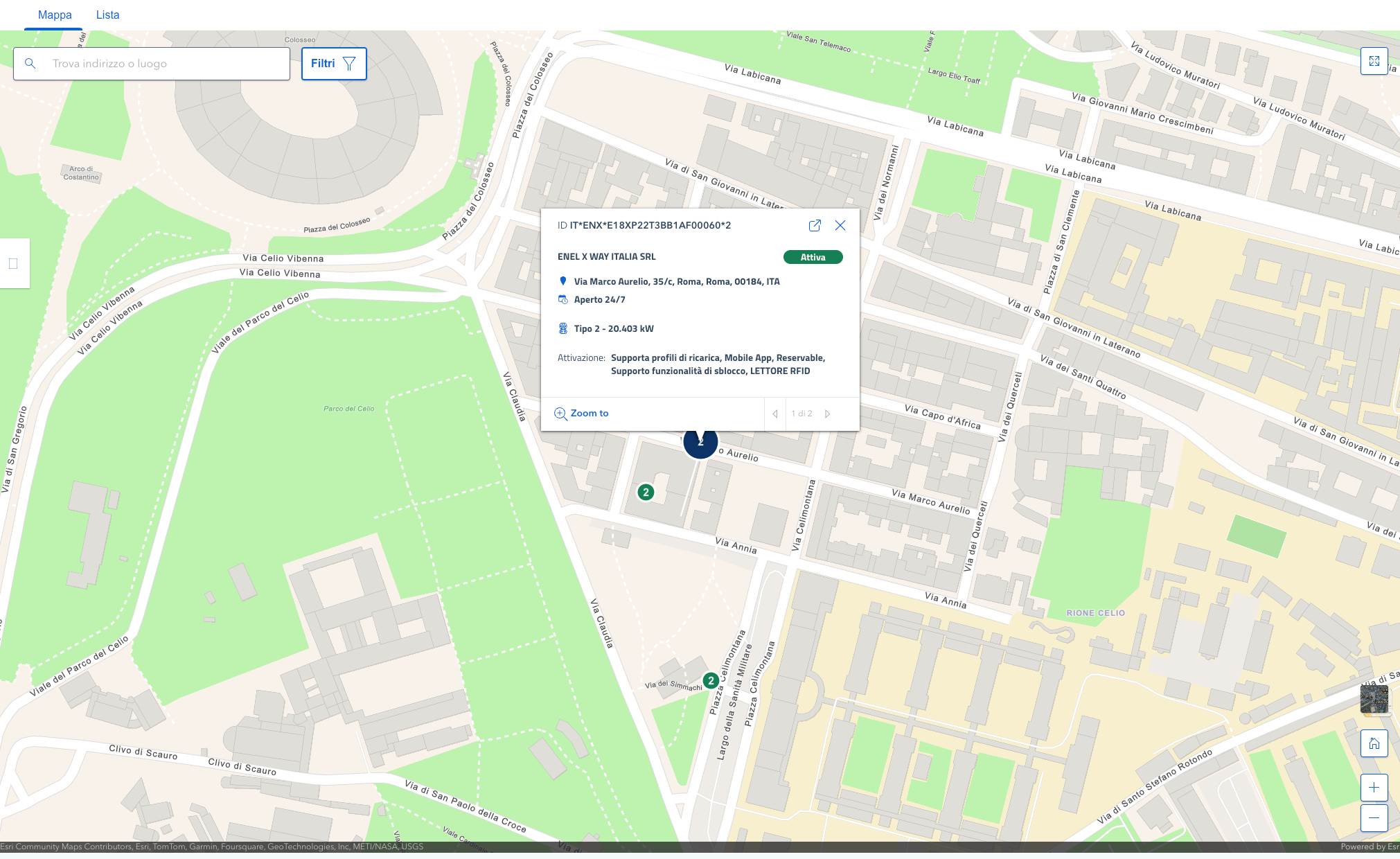 Per trovare i punti di ricarica dal sito web della PUN, è sufficiente selezionare la pagina Rete di ricarica per cercare manualmente accedendo alla mappa (bisogna zoomare molto per selezionarne una), oppure digitando un indirizzo o un luogo dalla lista. In entrambi i casi, ci sono molti filtri a disposizione per scremare la ricerca; e una volta selezionata una colonnina, il sistema fornisce alcune informazioni chiave fra cui gli orari di apertura, i tipi di connettori, le potenze, l’operatore e lo stato (se attiva o meno).
