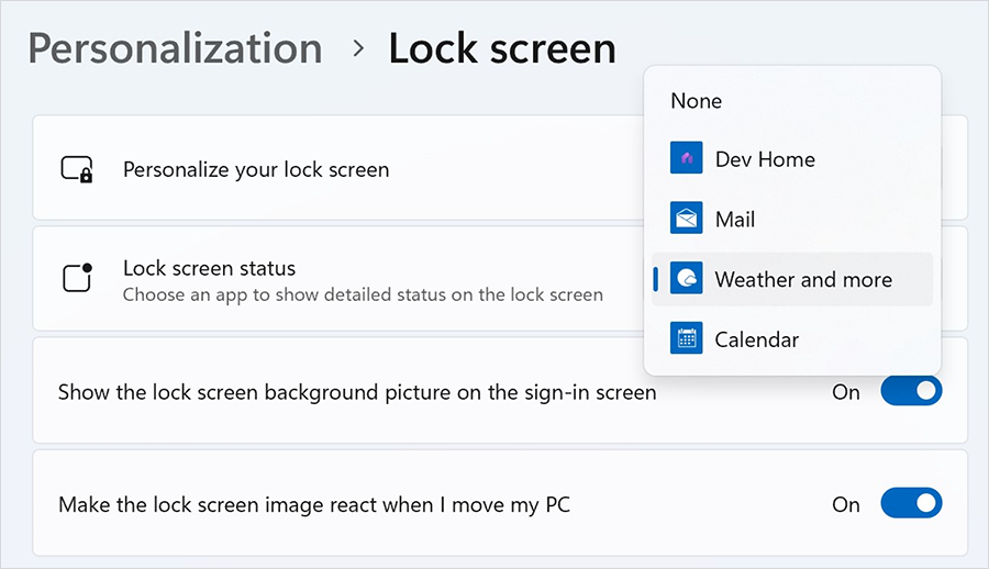 - Quindi seleziona Meteo e altro per mostrare lo stato dettagliato nella schermata di blocco.
