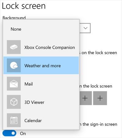 E finiamo con Windows 10: qui, dopo aver aperto “Impostazioni schermata di blocco“, servirà selezionare l’icona sotto “Scegli un’app per mostrare lo stato dettagliato nella schermata di blocco” e poi cliccare su “Meteo e altro“.