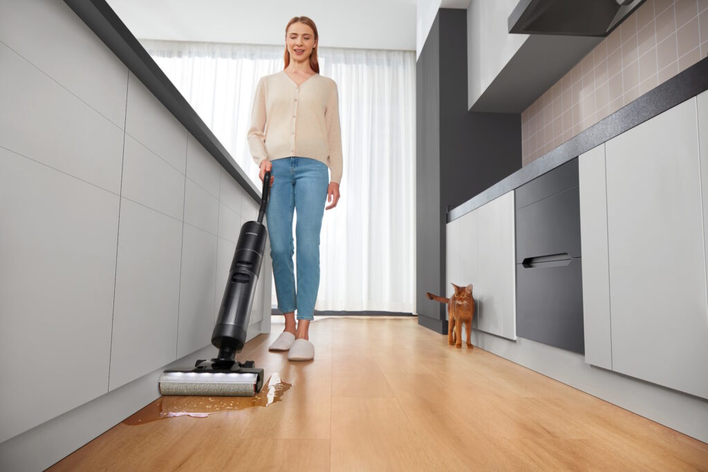 Al debutto anche Dreame H13 Pro, che costituisce un significativo aggiornamento della gamma di aspirapolvere a umido/secco ed è progettato per elevare la pulizia del pavimento grazie all’utilizzo di acqua calda: si distingue dal predecessore, H12 Pro, in tutti i parametri di prestazione. È dotato di una potenza di aspirazione di 18.000 Pa per catturare senza problemi lo sporco anche nei punti più complicati, di una spazzola motorizzata a 520 RPM con LED frontali per illuminare gli angoli più bui e di un sensore che rileva lo sporco in maniera intelligente regolando la potenza di aspirazione a tutto vantaggio dell’efficienza energetica e dell’autonomia. A tal proposito, grazie al pacchetto batteria da 6 x 4900 mAh può funzionare per 40 minuti di fila, pulendo spazi fino a 300 metri quadrati. Il peso di 5,6 kg di H13 Pro viene mitigato dal sistema GlideWheel, che facilita il movimento avanti e indietro in modo fluido.