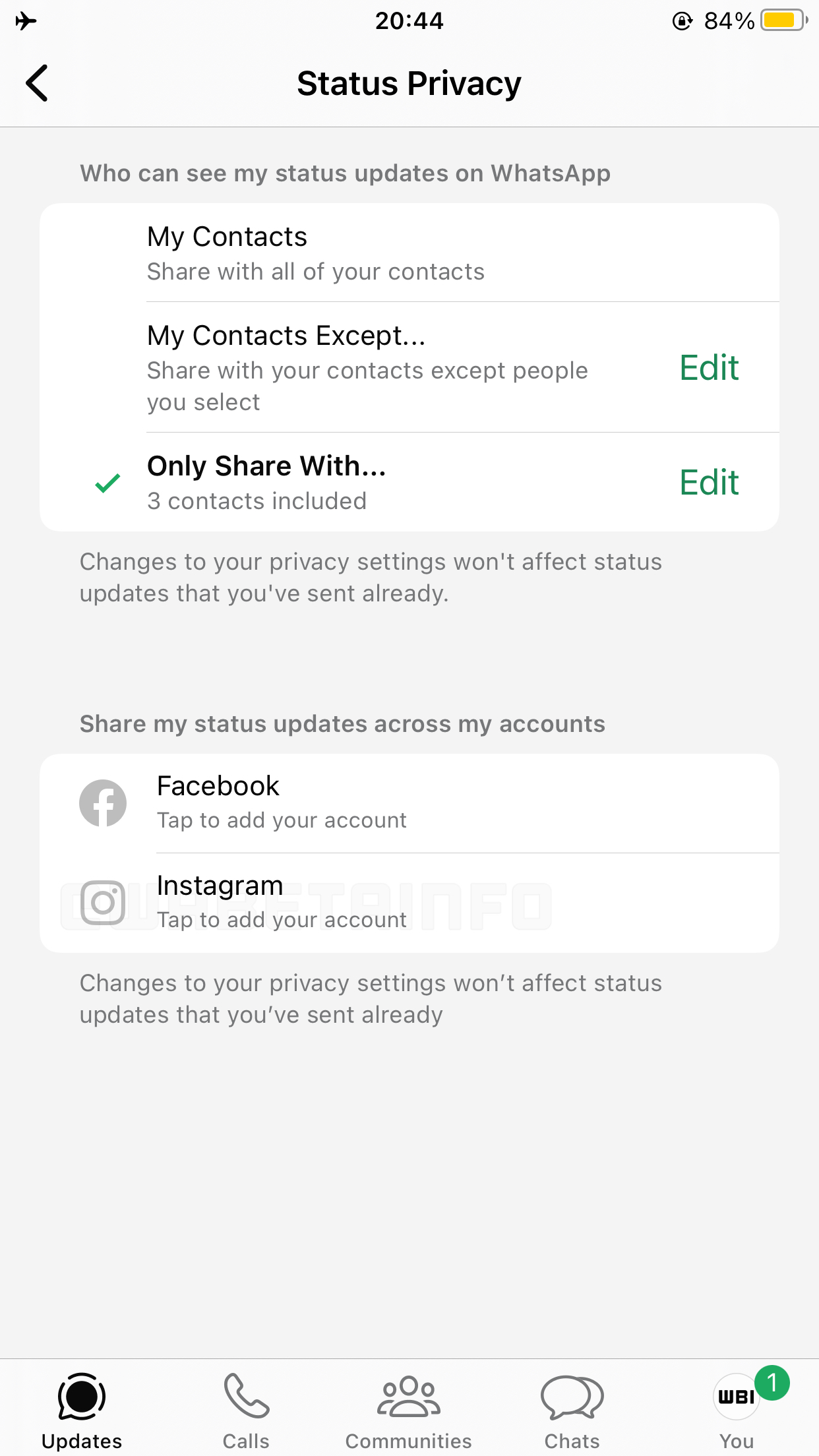 Secondo quanto emerso, questa funzione sarà facoltativa e disabilitata per impostazione predefinita, pertanto bisognerà abilitare l’opzione di cross-posting se si desidera condividere i propri aggiornamenti di stato su Instagram dopo averli pubblicati su WhatsApp.