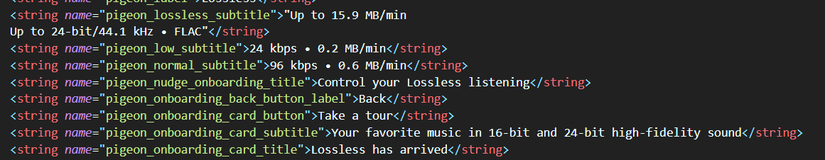Music Pro non si tratterebbe di un abbonamento a parte dal costo superiore rispetto a Spotify Premium, quanto piuttosto di un’aggiunta che si potrà sottoscrivere assieme all’abbonamento, ad un prezzo ancora sconosciuto. Nelle stringhe del codice possiamo notare frasi come “l’audio lossless è arrivato”, assieme anche alla conferma che Spotify supporterà file FLAC fino a 24 bit/44.1 kHz.