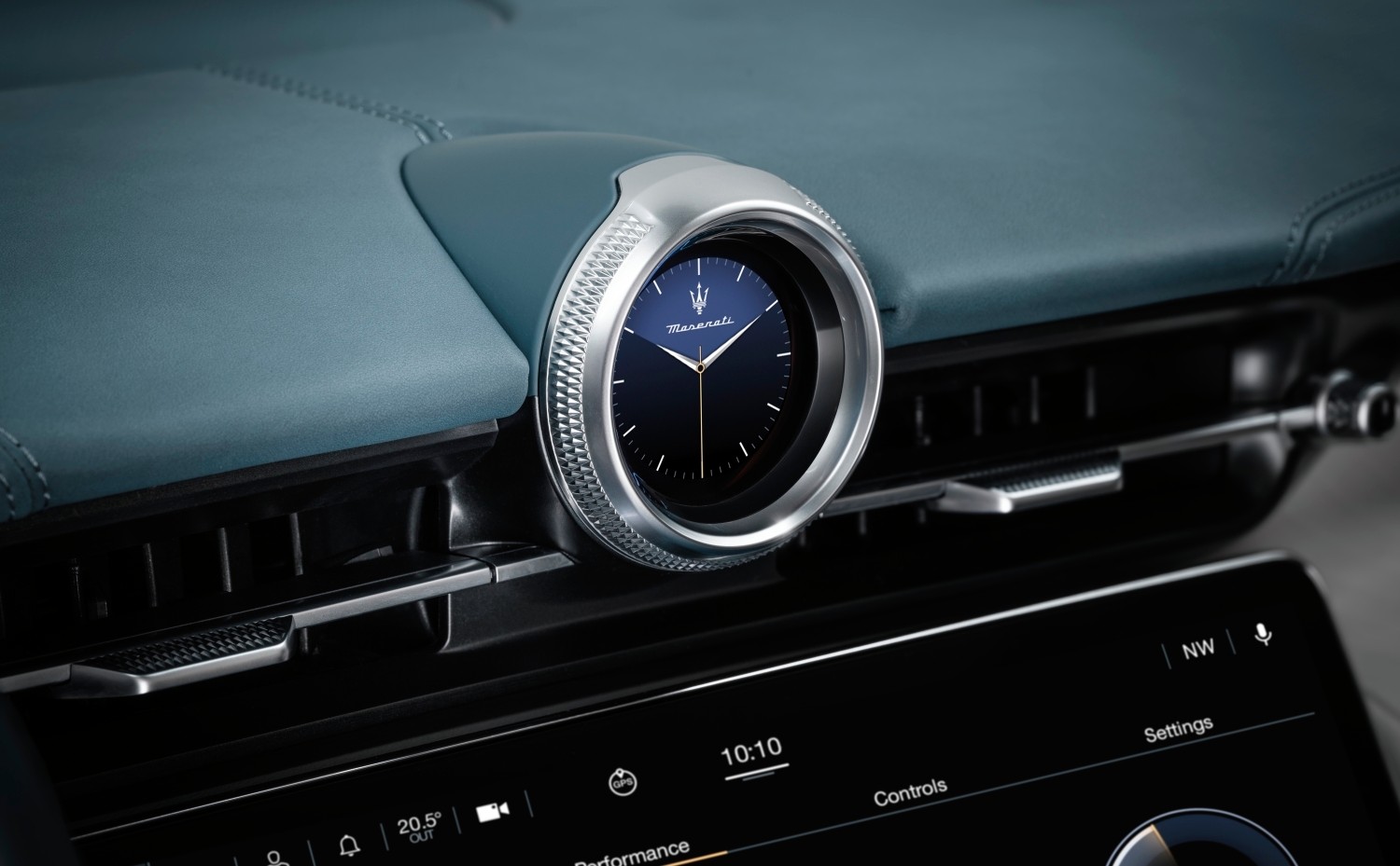 È protagonista anche la tecnologia. Sotto quell’orologio simil analogico (in base ai quadranti scelti), fa da contraltare un ampio schermo centrale da 12,3″ piazzato sopra un secondo pannello da 8,8″ che Maserati chiama Comfort display. Sembra un tutt’uno a prima vista, ma sono due schermi distinti: il primo è l’unità centrale di controllo del sistema di infotainment dell’auto, compatibile con Android Auto, Apple CarPlay e Baidu CarLife e personalizzabile con 4 diversi layout (Classic, Evolved, Relaxed e Corsa); il secondo, come intuibile dal nome, fa invece da piattaforma con cui gestire la climatizzazione e altri aspetti più tecnici dell’auto.