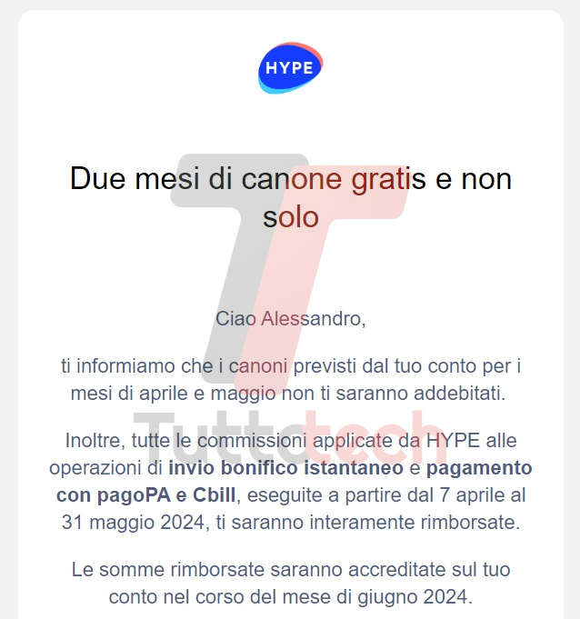 A circa una settimana dalla risoluzione dei disservizi che hanno colpito i suoi servizi da domenica 7 aprile, rendendo per giorni la vita molto difficile ai propri clienti, e dopo una lettera di scuse firmata dal CEO Giuseppe Virgone, Hype fa un “piccolo gesto” per farsi perdonare da tutti i clienti interessati dal prolungato disservizio (ovvero qulli che hanno aperto un conto entro l’11 aprile 2024).