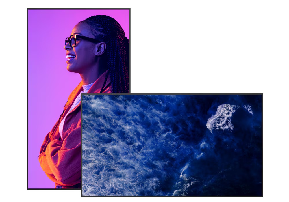 Fattore comune, la tecnologia Deep Black Non-Glare che assicura la riduzione dei riflessi e neri più profondi (elevato contrasto), pur non offrendo un pannello OLED (si tratta di un pannello LCD VA), configurandosi come la soluzione perfetta per ambienti difficili con elevata luminosità ambientale o illuminazione diretta (ad esempio per gli showroom), in grado di funzionare continuativamente per giorni.