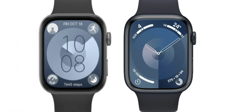 La cassa è ora quadrata e non più rettangolare come su Watch Fit 2 (che trovate in offerta su Amazon), e compare anche un pulsante in stile corona digitale: insomma, è chiaro che l’ispirazione arriva tutta dalle ultime generazioni di Apple Watch. E se non ci credete, date un’occhiata al confronto qui sotto (a sinistra trovate l’orologio di Huawei, mentre nell’immagine a destra c’è Apple Watch series 9).