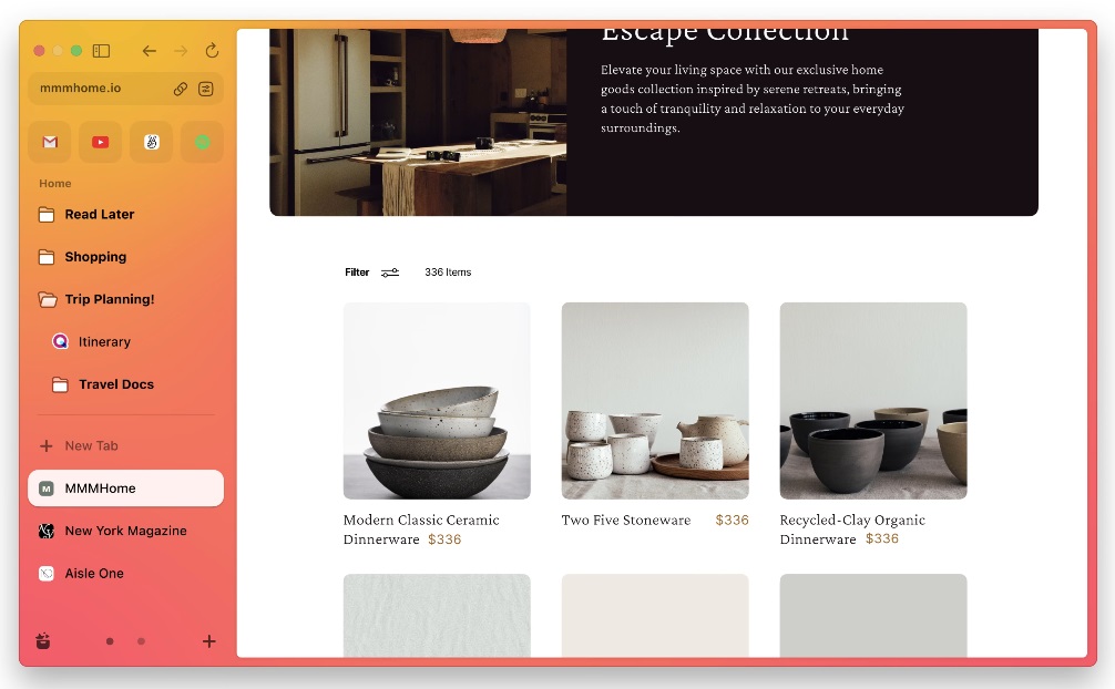 Arc si distingue per la barra laterale pieghevole che combina schede verticali e segnalibri per offrire una visualizzazione pulita e piacevole delle pagine Web.