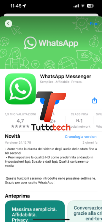Potete scaricare WhatsApp per iOS dall’App Store seguendo questo link.