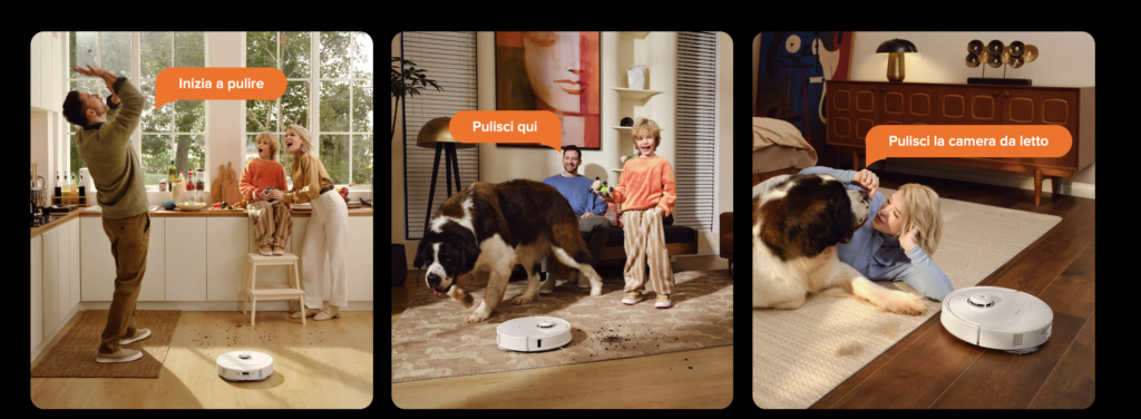 Qrevo MaxV è in grado di avviare una videochiamata in completa autonomia, permettendo così di comunicare direttamente con il proprio cane o gatto, anche nei momenti in cui si è fuori casa. Il robot presenta inoltre il sistema di riconoscimento degli ostacoli Reactive AI, grazie al quale è in grado di aggirare decine di ostacoli di diversa tipologia e forma.