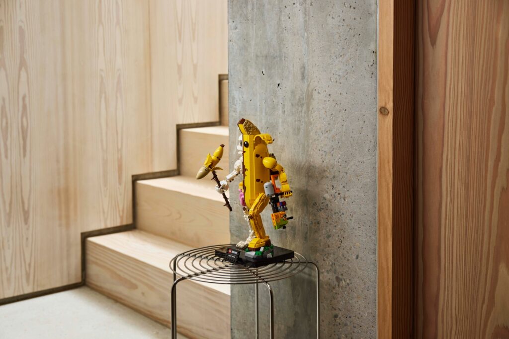 Decisamente più adatto all’esposizione è LEGO Fortnite Bananita Sbucciata, realizzato con 1414 mattoncini per portare l’avventura fuori dallo schermo. Insieme al personaggio troviamo accessori particolarmente dettagliati, come Peely Pock Pickaxe, Paint Launcher e Banana Bag Back Bling. Si chiude con LEGO Fornite Batte Bus, realizzato con 954 pezzi, che ricrea il bus che sarà introdotto nel gioco dal mese prossimo.