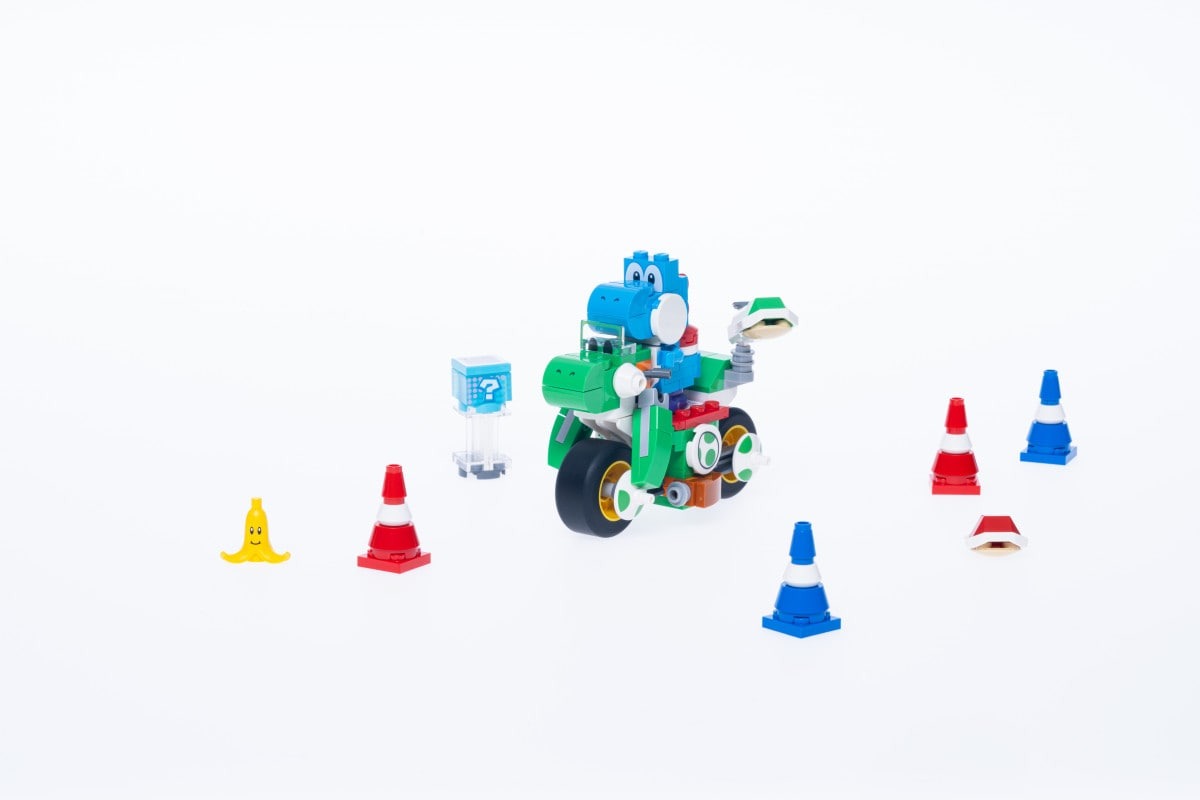 Il primo set vede come protagonista il draghetto più amato di sempre, pronto a sfrecciare sulla propria moto lanciando conchiglie ed evitando le altre auto. Il set è composto da 133 pezzi e include la figura di Yoshi Light-Blue, una conchiglia e altri accessori. Il prezzo di vendita sarà di 14,99 euro