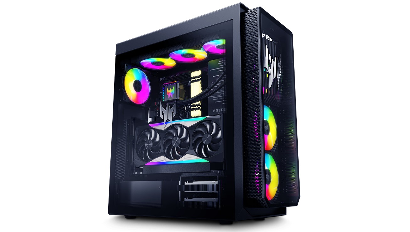 Prestazioni senza compromessi per questo sistema desktop Acer, che potrebbe montare il Core Ultra 9 285K da 24 core e allo stesso tempo si serve della più recente tecnologia di raffreddamento con il sistema AiO a liquido e tre ventole Predator CycloneX 360 (non manca l’illuminazione ARGB). A bordo troveremo sino a 128 GB di RAM DDR5 in Dual-Channel le più avanzate opzioni di espansione e connettività come Thunderbolt 4 e Wi-Fi 7, senza omettere le svariate opzioni per lo storage HDD fino a 4 TB, 6 TB per SSD M.2 PCIe e uno slot SSD swap per l’espansione.
