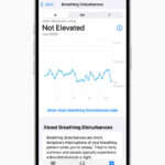 Nota come Disturbi della respirazione, si avvale dell’accelerometro degli Apple Watch per rilevare piccoli movimenti del polso associati alle interruzioni del normale ritmo respiratorio durante il sonno. Ogni trenta giorni (serve una certa quantità di dati per far sì che vengano rilevate delle anomalie) fornisce un resoconto e, se l’algoritmo rileva segni consistenti del problema, avvisa di conseguenza l’utente. I risultati di questa funzione possono essere usati anche per valutare meglio la qualità del sonno e i fattori che lo influenzano, risultati che sono visibili nell’app Salute, in cui ci sono informazioni utili e da cui è possibile estrapolare file PDF con storici e maggiori informazioni utili anche per consulti medici.