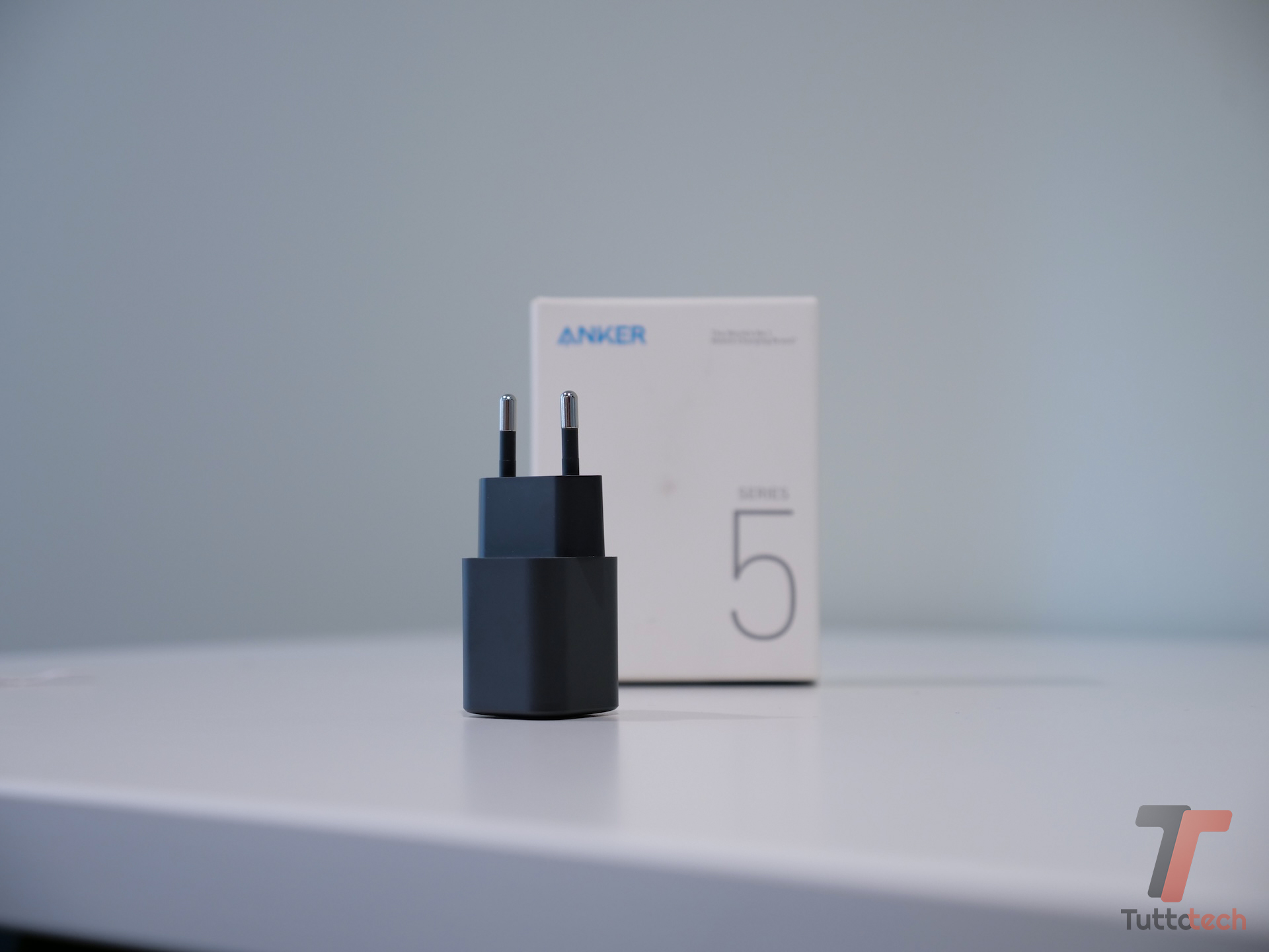 Partiamo da un prodotto decisamente compatto, un carica batterie con tecnologia GaN (nitruro di gallio) che permette di contenere al massimo le dimensioni e avere un carica batterie tascabile. È dotato di una singola porta USB-C e può erogare una potenza massima di 30 watt, risultando quindi perfetto sia per gli iPhone che per i dispositivi Android.
