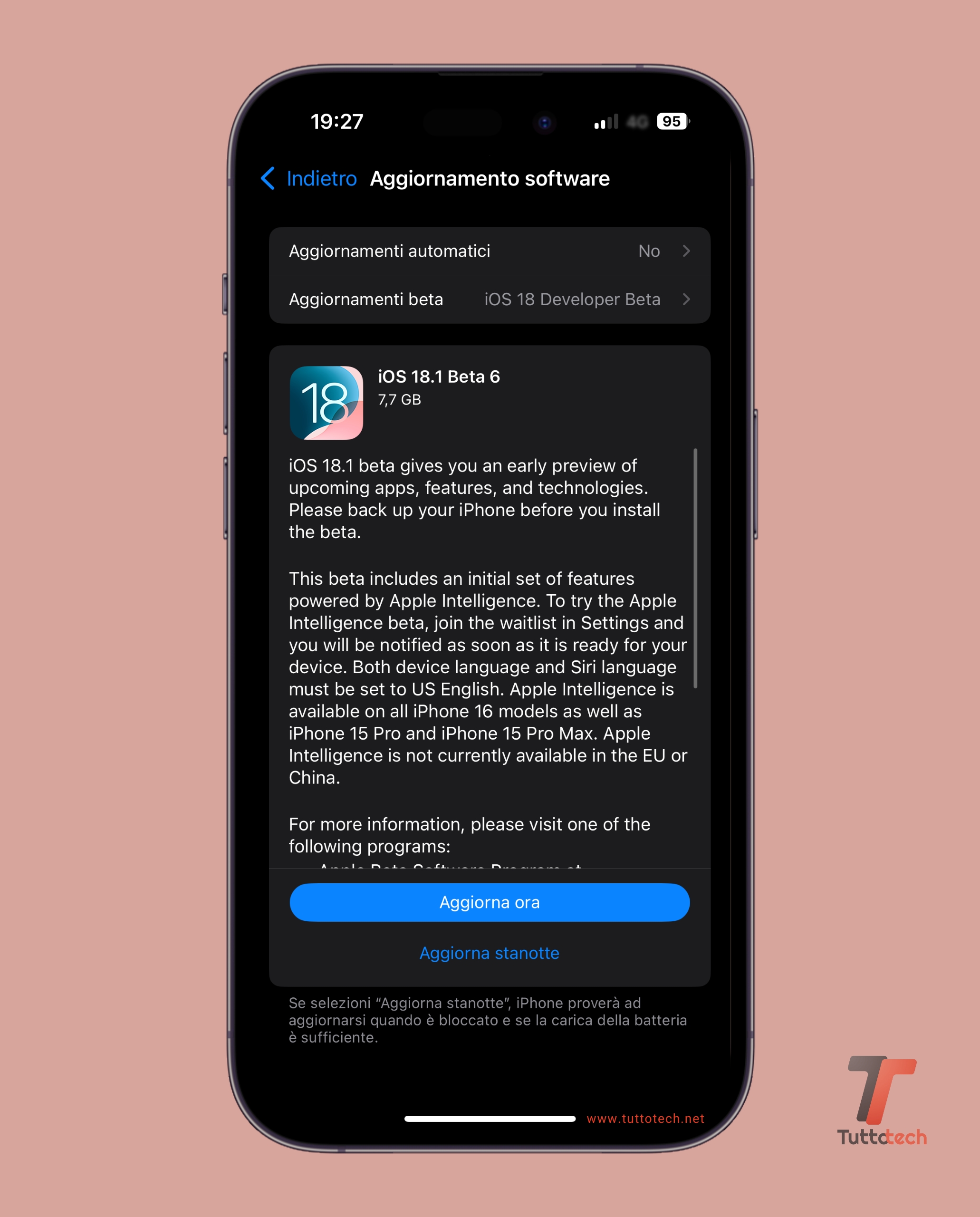 Beta 6 di iOS 18.1 e iPadOS 18.1