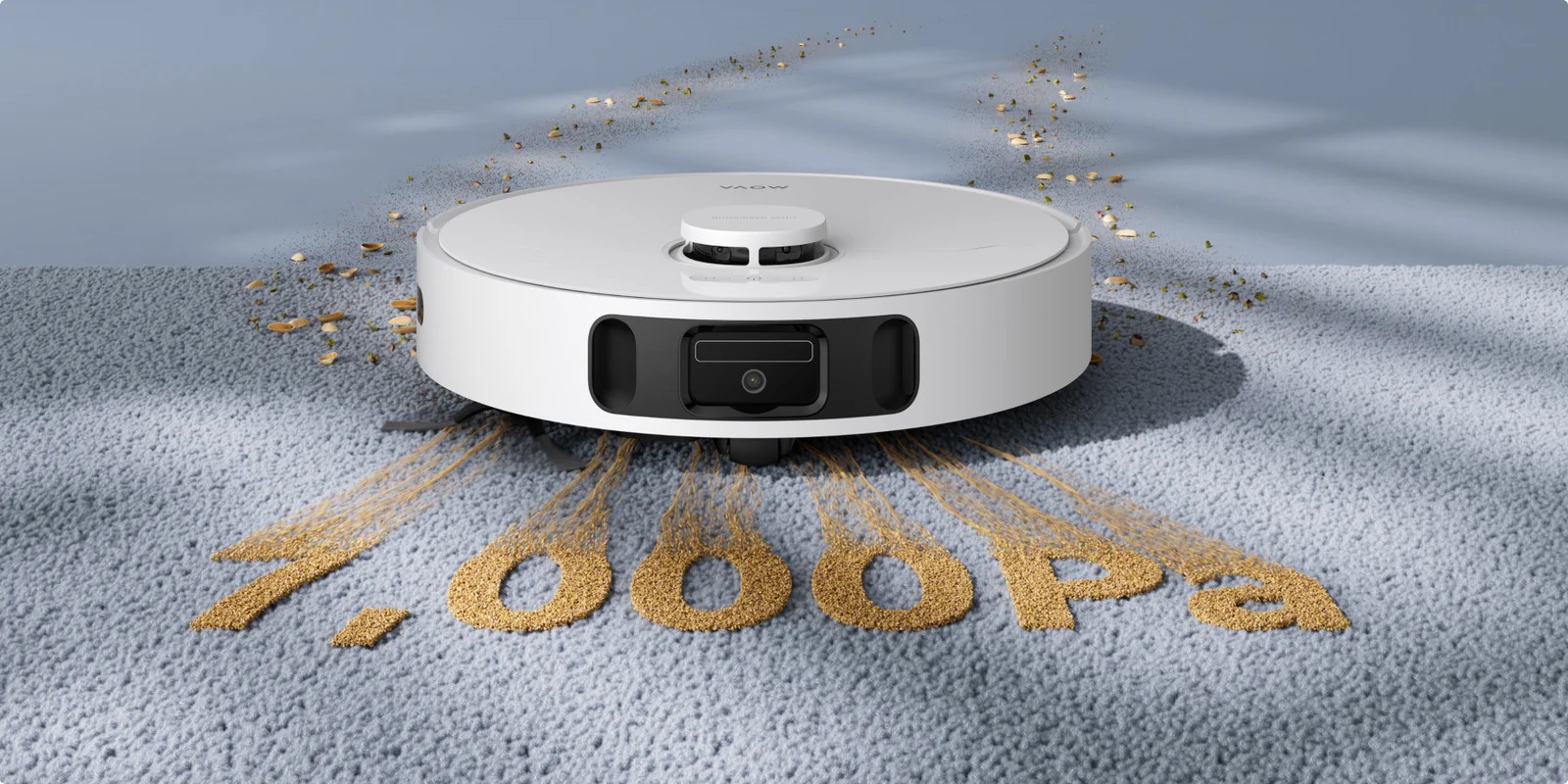 Dotato di una potente aspirazione Vormax da 7.000 Pa, il robot domestico elimina facilmente briciole, detriti e peli di animali domestici e passa senza problemi dai pavimenti ai tappeti.