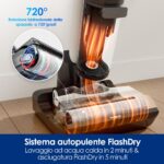 Una delle operazioni più fastidiose da fare al termine dele pulizie, è quella di dover risciacquare il mocio, e di metterlo ad asciugare in fretta, per evitare che si formino muffe e cattivi odori. Con Tineco FLOOR ONE S7 FlashDry anche questo sarà un brutto ricordo. Vi basterà infatti riporlo sulla base di ricarica, verificare che il contenitore dell’acqua pulita sia pieno, vuotare quello dell’acqua sporca e premere un tasto sull’impugnatura.