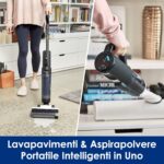 Nella confezione di vendita troverete sia una lavapavimenti che un aspirapolvere, che condividono lo stesso motore con batteria: vi basta sfilarlo da uno dei due, inserirlo nell’altro e passare dal lavaggio del pavimento, o dall’aspirazione di liquidi, alla pulizia del divano o dei mobili in modo fluido e veloce. Il sensore iLoop rileva lo sporco sul pavimento e applica la potenza necessaria, al fine di ottimizzare i consumi.