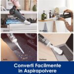 E con l’aspirapolvere cordless potete pulire al meglio i mobili, sedie e divani, togliere le ragnatele dai muri e pulire a fondo angoli e fessure, e in quei post in cui la lavapavimenti fatica ad arrivare, sotto ad alcuni mobili o nei passaggi più stretti.