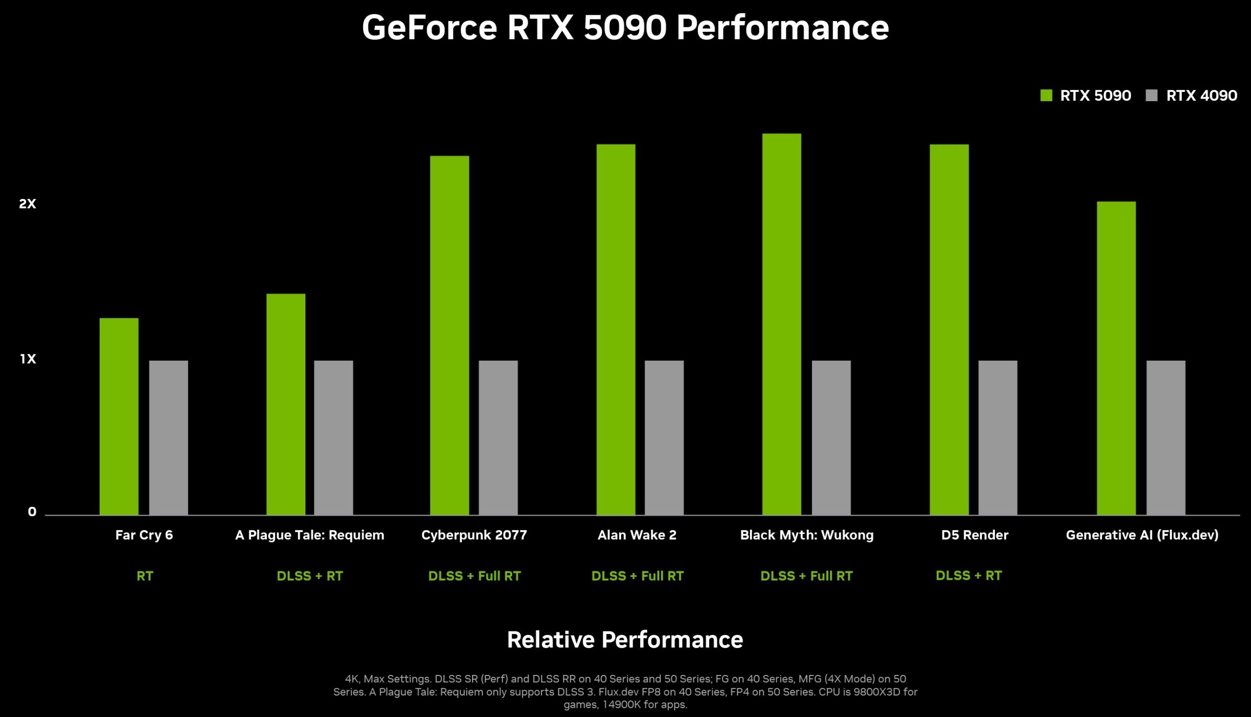 La nuova top di gamma, la GeForce RTX 5090, è ora il riferimento assoluto nel settore gaming e della produttività; la sua GPU Blackwell GB202-300, integra ben 92 miliardi di transistor con un picco di 3.352 TOPS e prestazioni che, grazie al nuovo DLSS 4, permettono di addoppiare le performance rispetto alla GeForce RTX 4090.