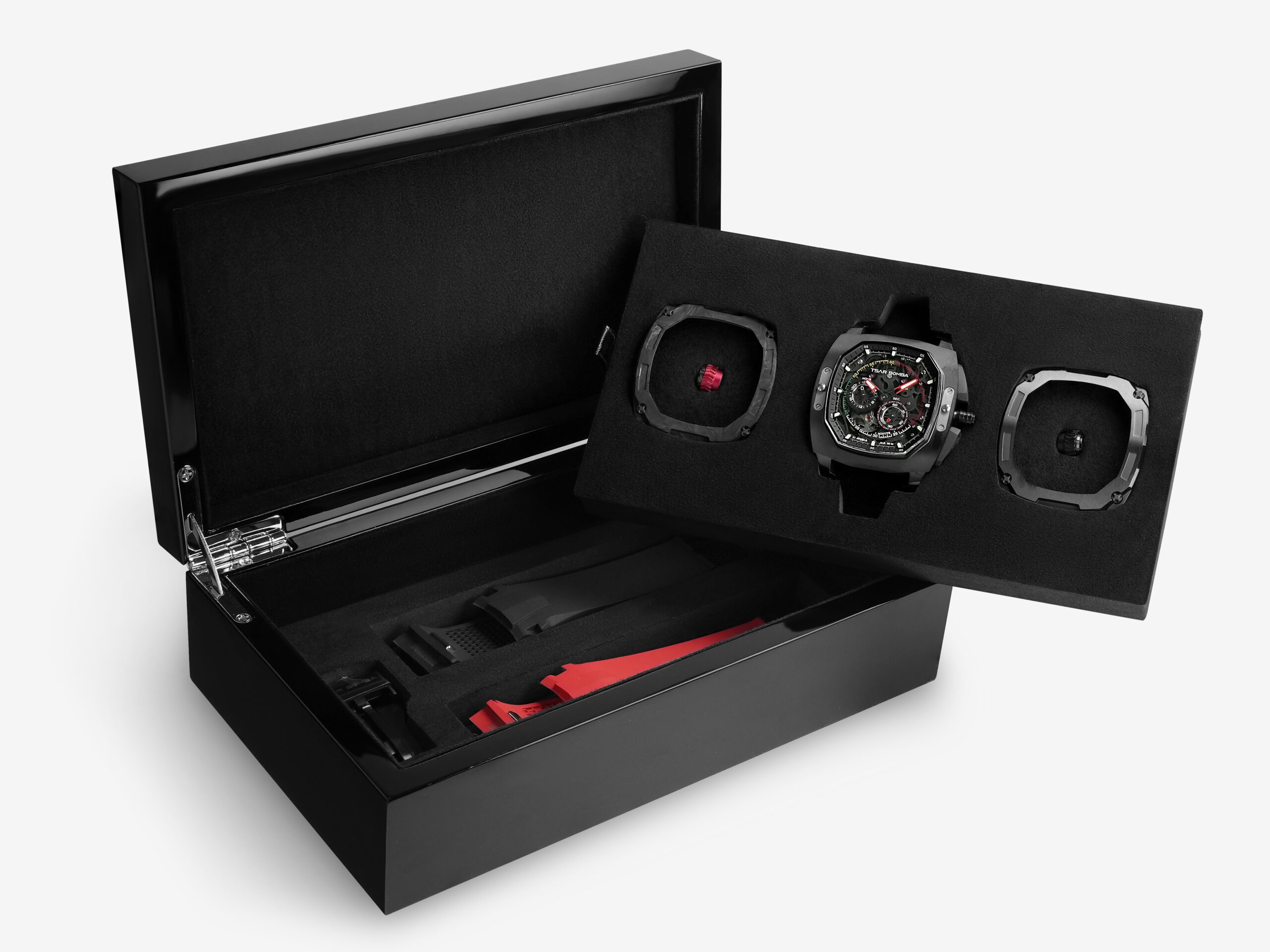 Una confezione dunque che fin dalla sua apertura denota qualità e pregio e una attenzione quasi maniacale per i piccoli dettagli. Trovare un produttore che permetta di cambiare aspetti apparentemente marginali come la corona non è così facile e scontato. Potete scegliere la ghiera in acciaio per le occasioni più eleganti, grazie a una eleganza intramontabile, o il design più moderno e futuristico della fibra di carbonio, più adatta ai momenti informali.