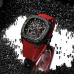 La nuova serie Dark Matter (materia oscura) si compone al momento di quattro modelli e Tsar Bomba Dark Matter 1 è quello che rappresenta il punto di ingresso, dal punto di vista economico, in questa famiglia di orologi. Partiamo dalla confezione di vendita, decisamente ricca per consentire fin da subito all’utente di trovare la perfetta combinazione. Oltre al corpo principale dell’orologio troverete quindi due ghiere, una un fibra di carbonio e una in acciaio inossidabile, due diverse corone, una rossa e una nera, e due cinturini, anche in questo caso rosso e nero, con la chiusura separata di colore nero.